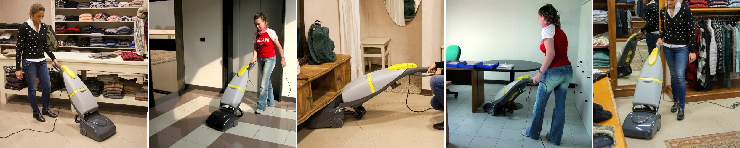 Чистящие машины и традиционная швабра.