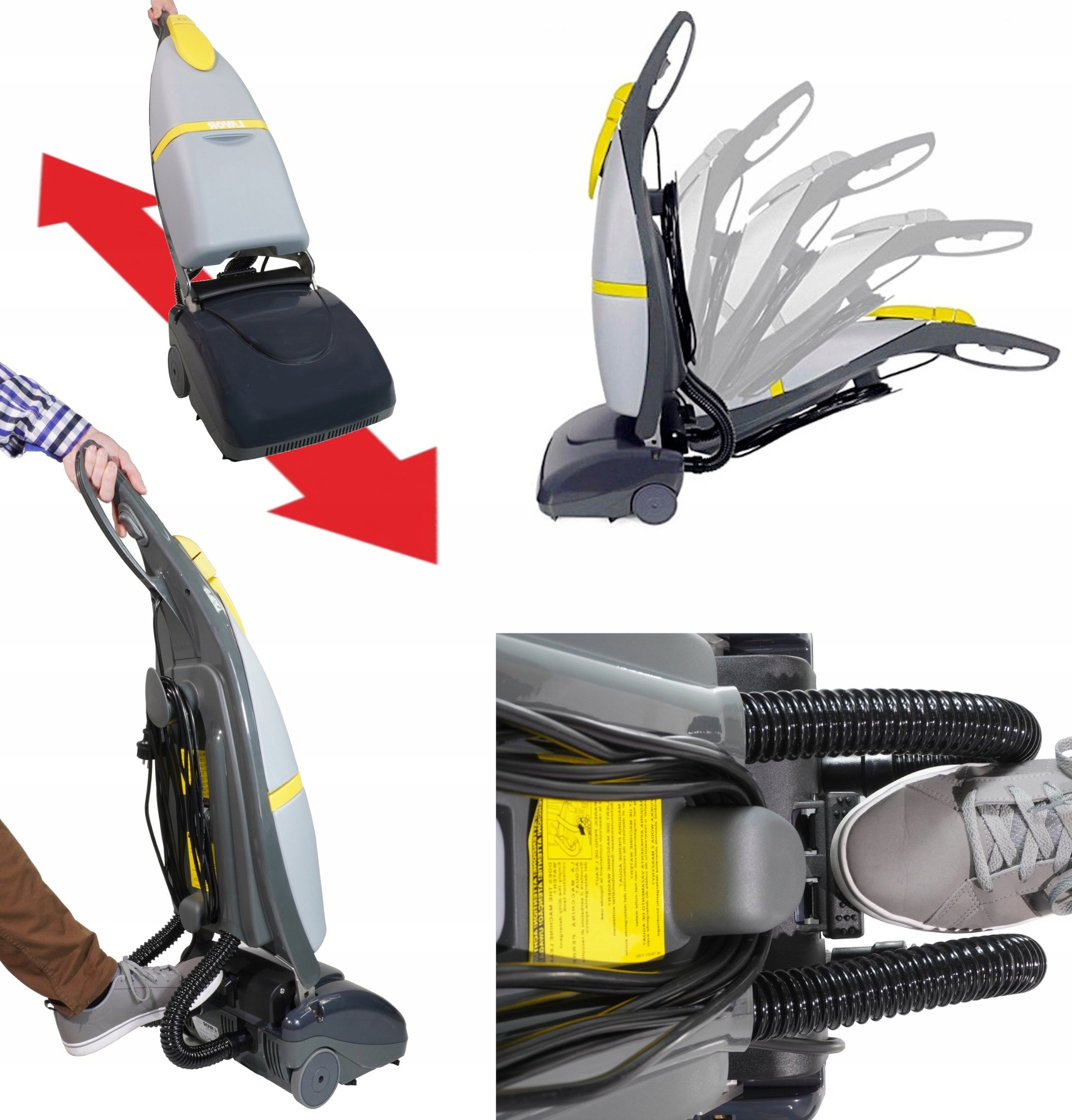 - Благодаря маневренной и компактной конструкции, весу всего 13 килограмм и небольшим габаритам, машину можно хранить, транспортировать и припаркован b> за несколько секунд в любом месте.