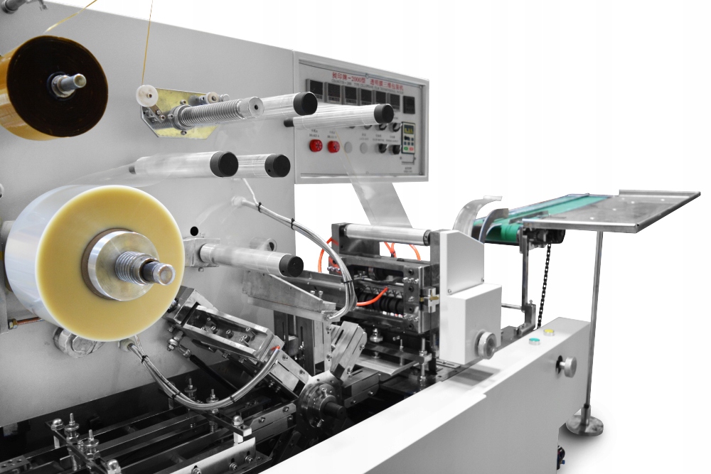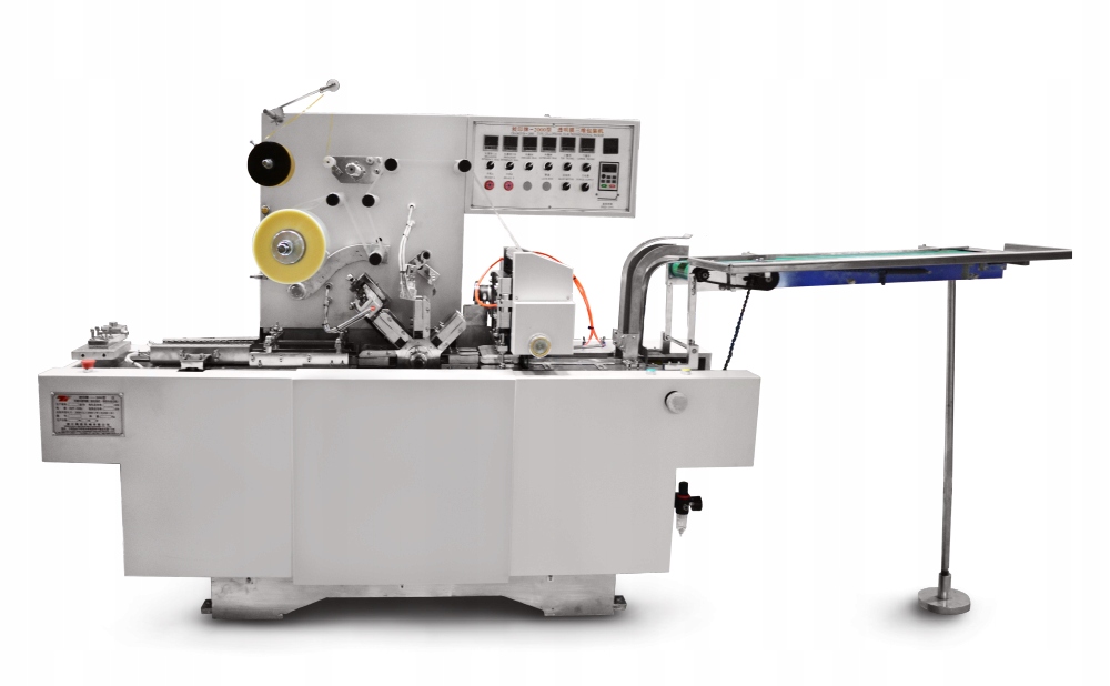 Целлофановая машина оснащена конвейерной лентой и накопительным баком, которые обеспечивают автоматическую подачу коробок (пакетов), без необходимости ручного вмешательства. Пакеты оборачиваются фольгой и лентой, а затем термосвариваются.