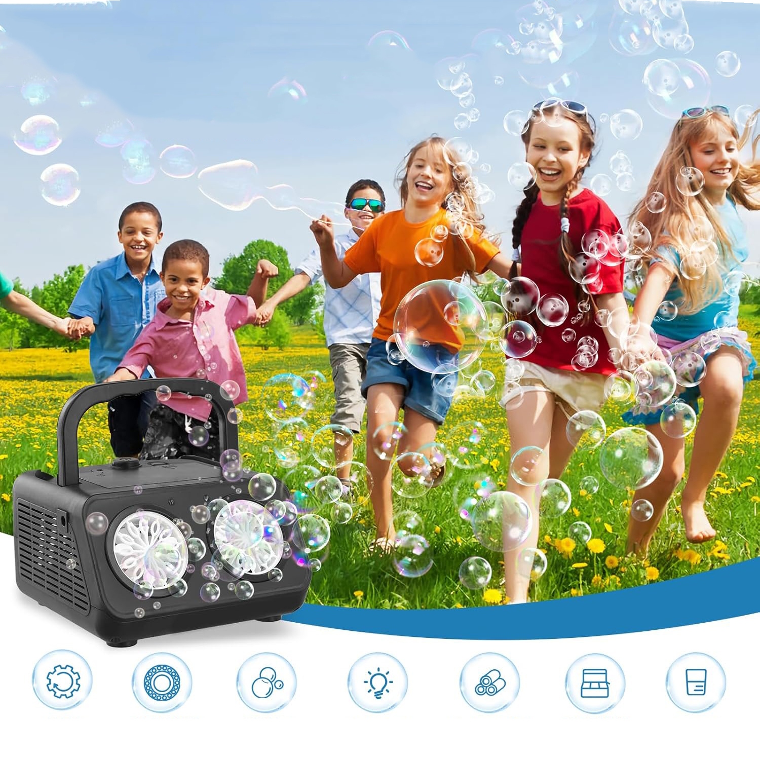 Дети в восторге от пузырьков, идеальный подарок, который будет играть часами для всей семьи и вызовет улыбку на лице каждого ребенка! Он также отлично подходит для создания романтической атмосферы на таких встречах, как свадьбы, парады, мероприятия, дни рождения и все другие мероприятия, которые вы проводите.