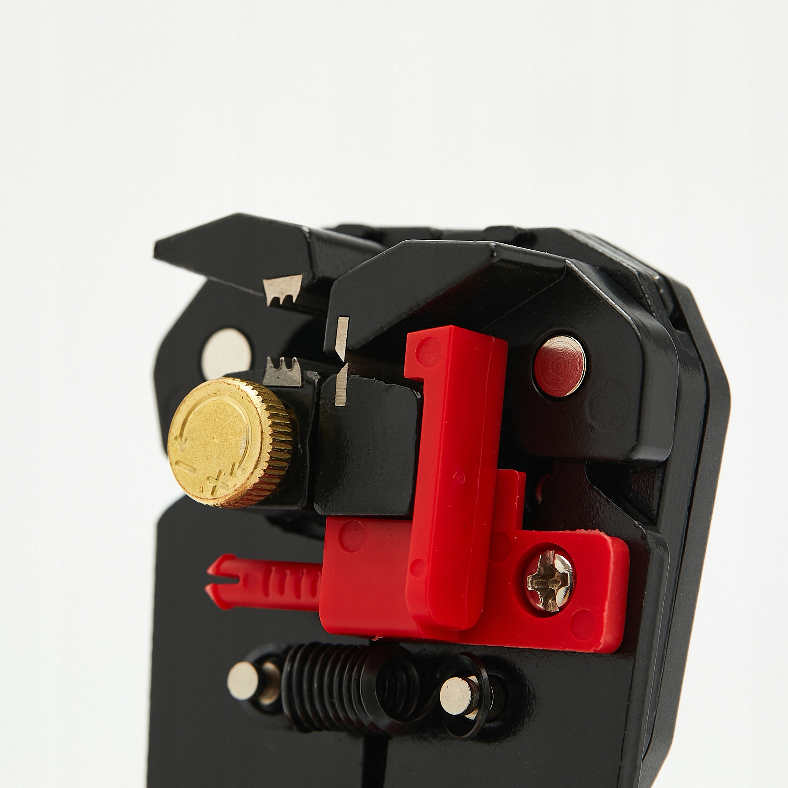 <р>1. Поверните регулировочный винт, чтобы отрегулировать силу лезвия: против часовой стрелки, чтобы уменьшить, и по часовой стрелке, чтобы увеличить. <р>2. При зачистке тонких проводов поворачивайте ручку против часовой стрелки. <р>3. Если провод кабеля оборван, отрегулируйте винт против часовой стрелки. <р>4. Если изоляцию трудно или невозможно снять, поверните винт по часовой стрелке.