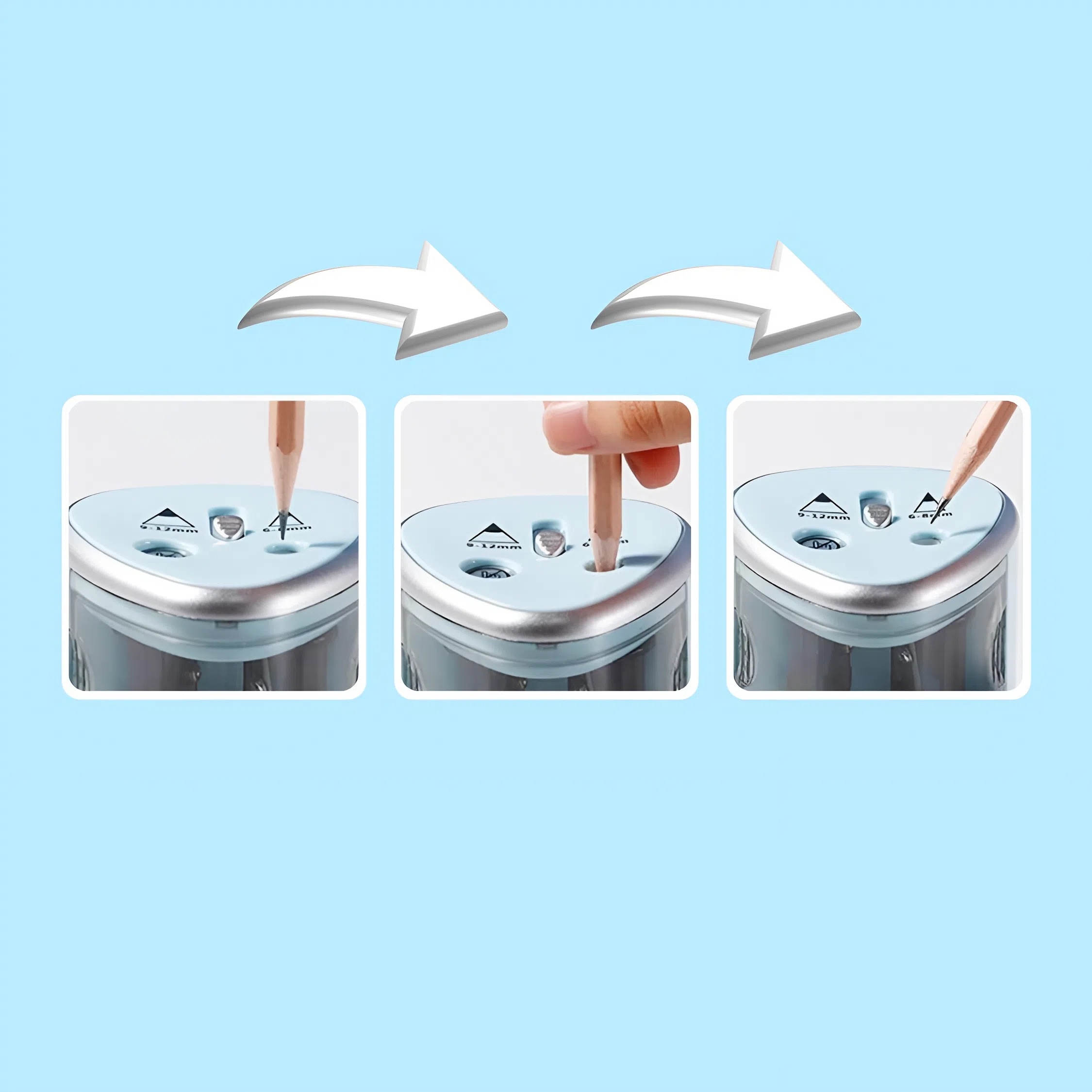 Электрическая температура с двойным отверстием - это удобное, безопасное и эффективное решение для температуры классических карандашей, карандашей и гигантского. Автоматический механизм, безопасная блокировка и стабильная конструкция делают устройство идеально работать дома и в школе.