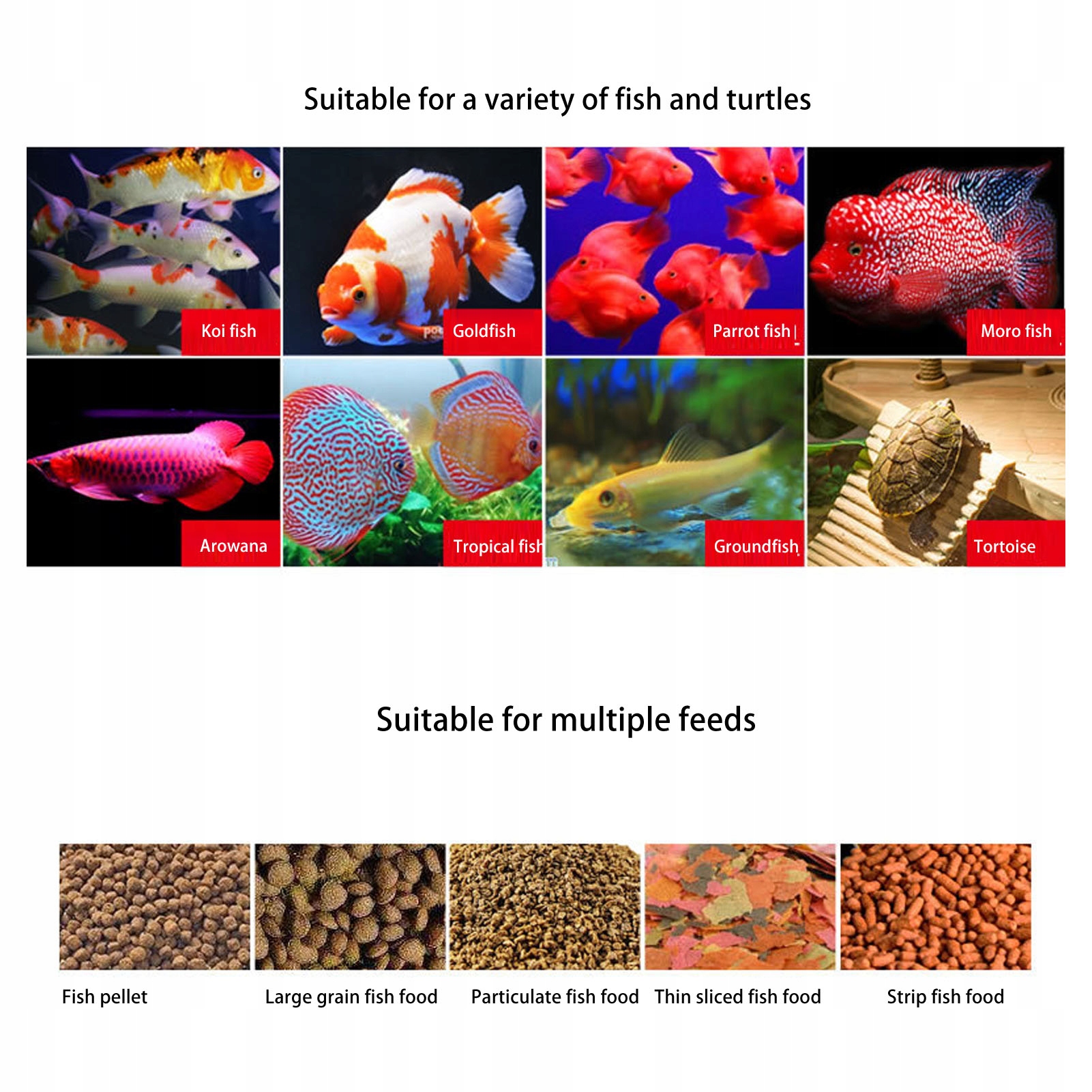 2. Многофункциональная конструкция: автоматическая кормушка рыбы подходит для всех типов аквалетов и может кормить рыбу и типы, чтобы соответствовать различным потребностям