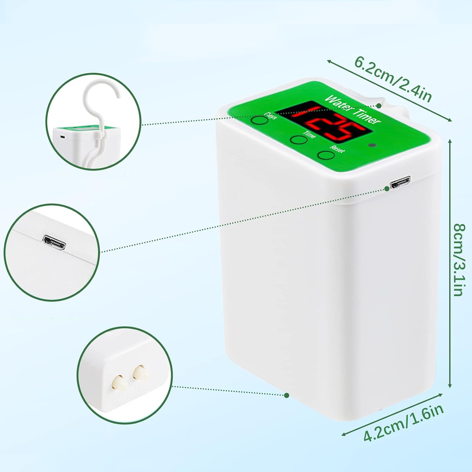 - Установите интервал (от 1 до 10 дней) и время полива (от 0 до 180 секунд), и после программирования это устройство автоматического полива будет поливать за вас.