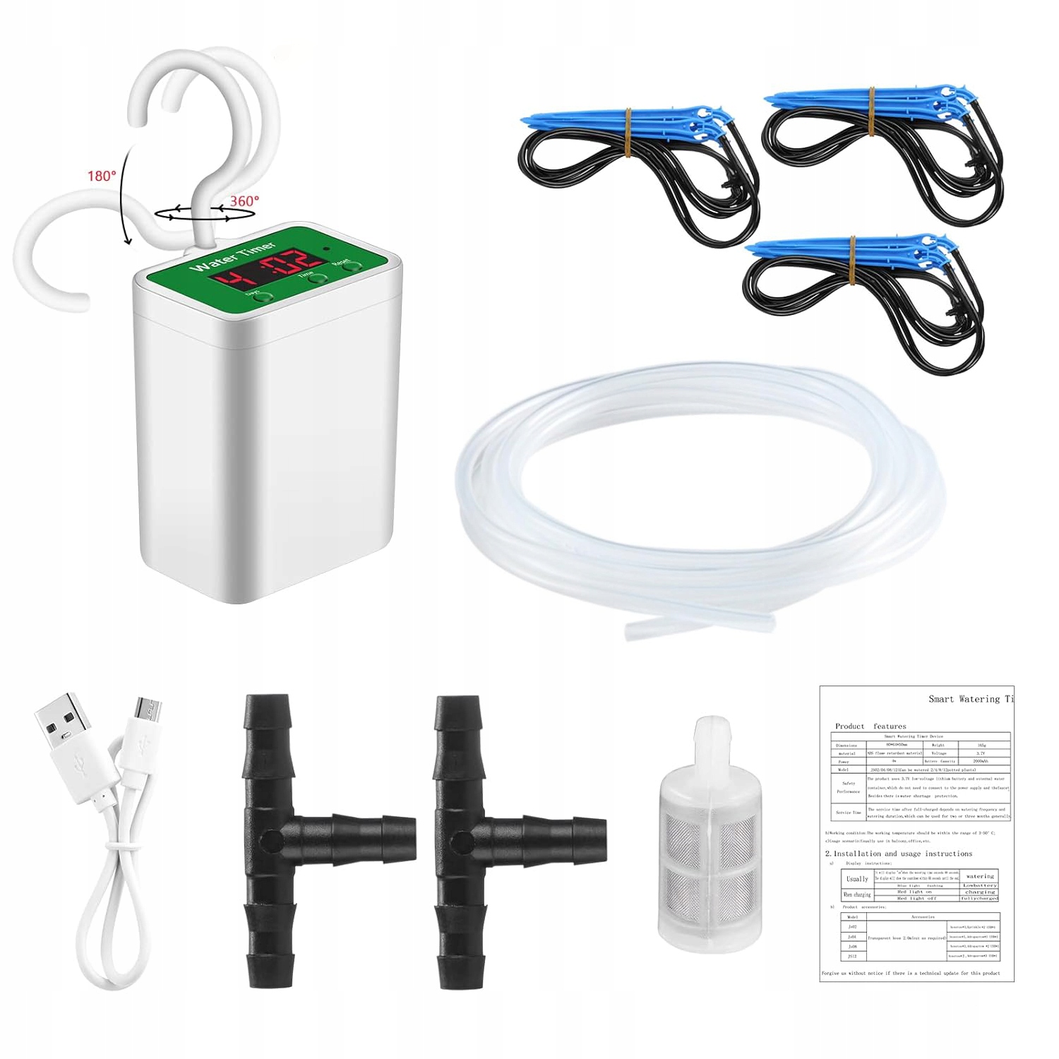 - Включает 1 балконную систему орошения, 1 USB-кабель, 1 черную трубку длиной 2 м, 1 фильтр, 2 тройника, 3 капельные стрелки.