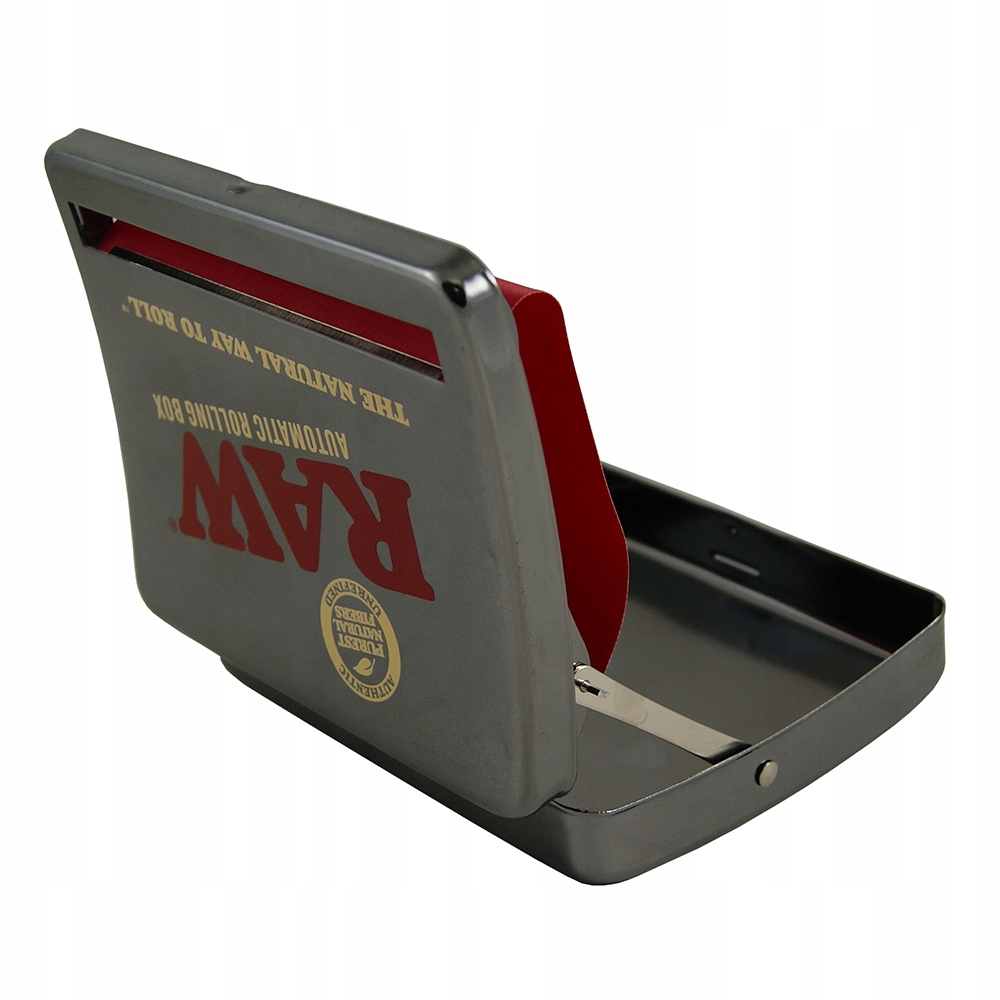 Раскаточная машина RAW в цвете титан, внутри есть место для табака и красная лента для раскатки стыков, длину которой можно регулировать в 4-х размерах, что позволит нам идеально подогнать толщину нашего стыка.