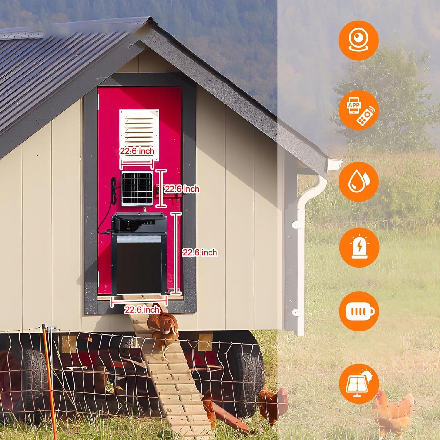 АВТОМАТИЧЕСКАЯ СОЛНЕЧНАЯ ДВЕРЬ ДЛЯ КУРИЦЫ С КАМЕРОЙ HD IP65, ПРИЛОЖЕНИЕ НОЧНОГО ВИДЕНИЯ, ДИСТАНЦИОННОЕ УПРАВЛЕНИЕ
