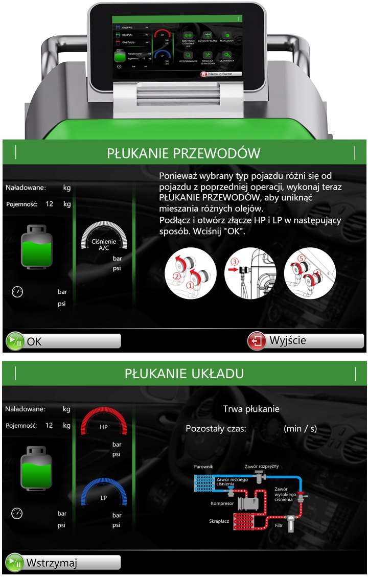 - Функция полностью автоматического рабочего режима. Полный автоматический цикл облегчает работу и устраняет угрозу ошибок при обслуживании A/C