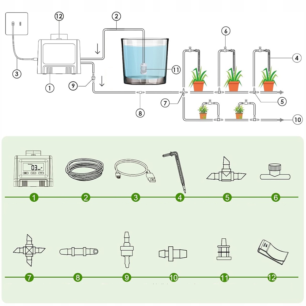 содержит все необходимое для быстрой установки всего за 10 минут. Большой светодиодный экран и интуитивно понятный интерфейс делают его простым в использовании, идеально подходит как для начинающих, так и для опытных садовников.