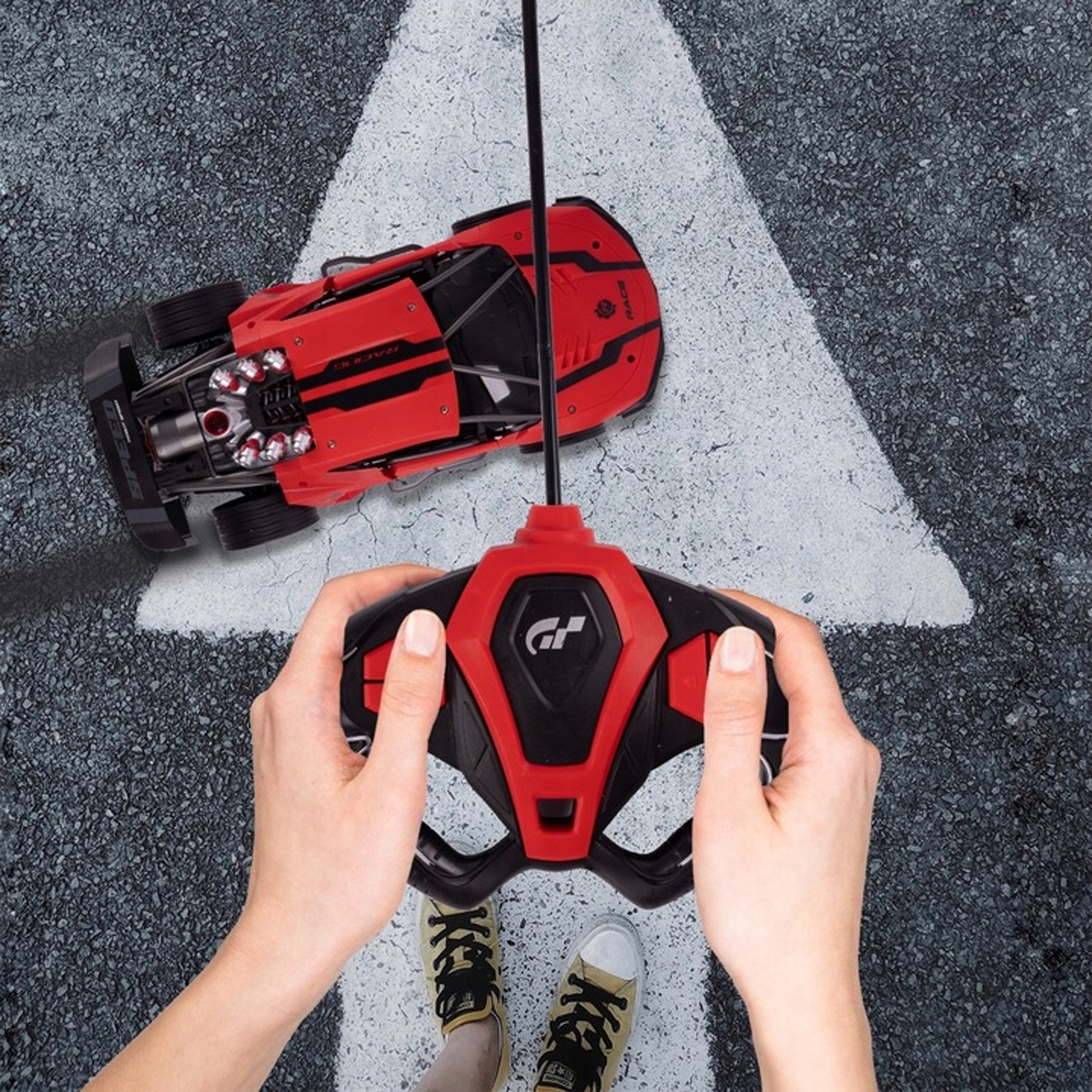 Машинка на дистанционном управлении имеет множество реалистичных элементов, которые непременно заинтересуют ребенка. В задней части автомобиля расположены два светодиода, которые освещают дым, идущий из автомобиля.
