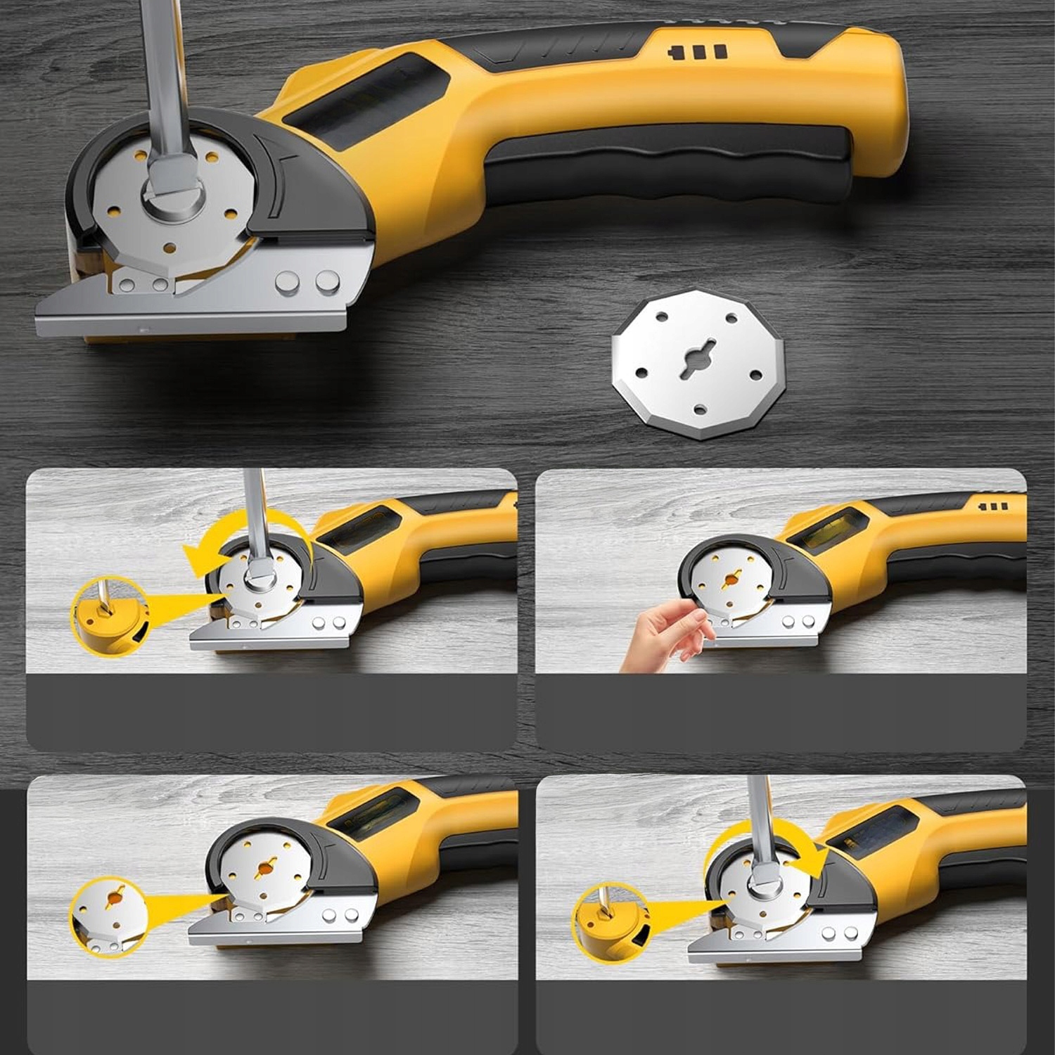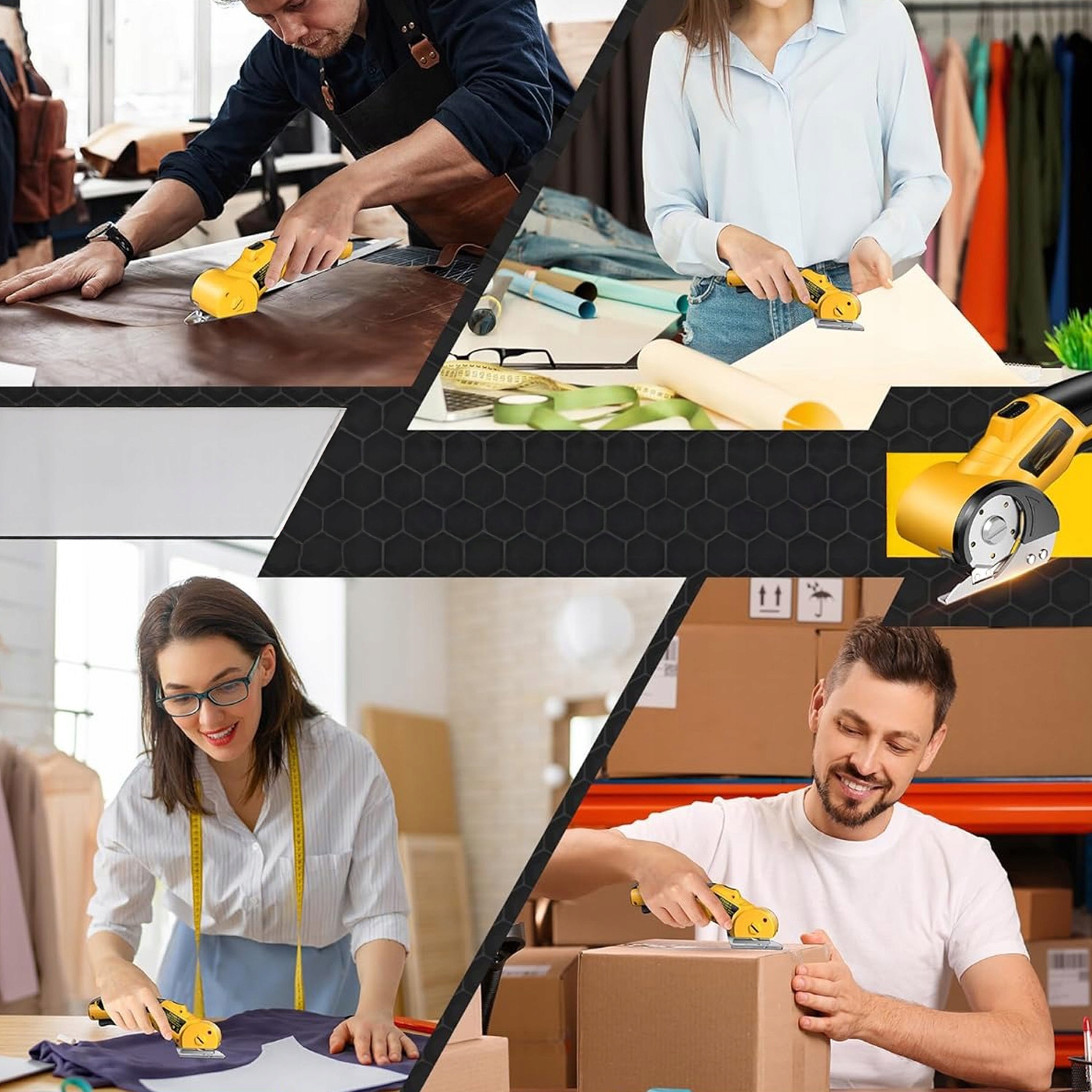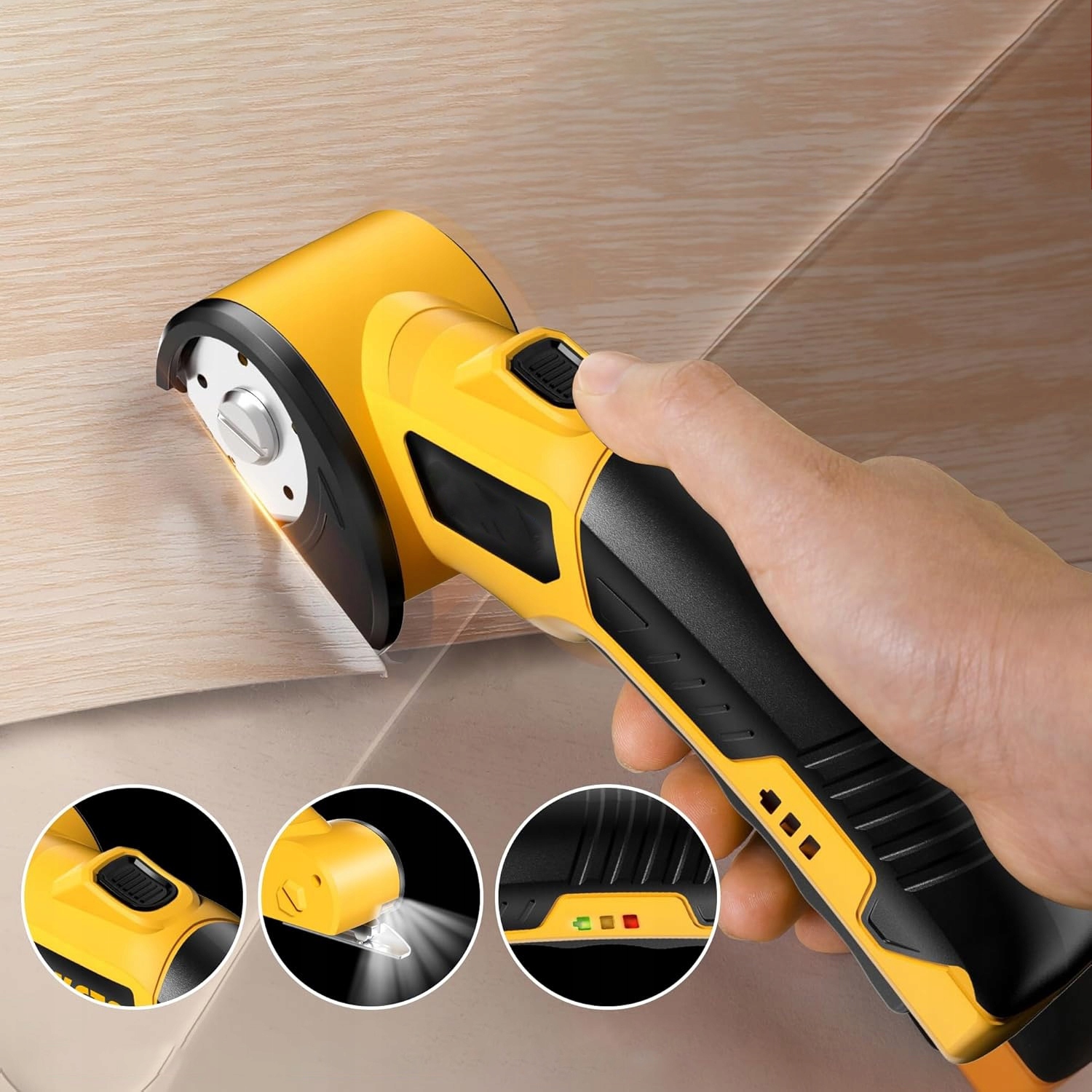 Электрическая ткань работает со скоростью 10 000 сокращений в минуту, благодаря которой он справляется с твердыми материалами и превышает ручные ножницы. Острый лезвие позволяет точное разрезание по прямой линии или в арке.