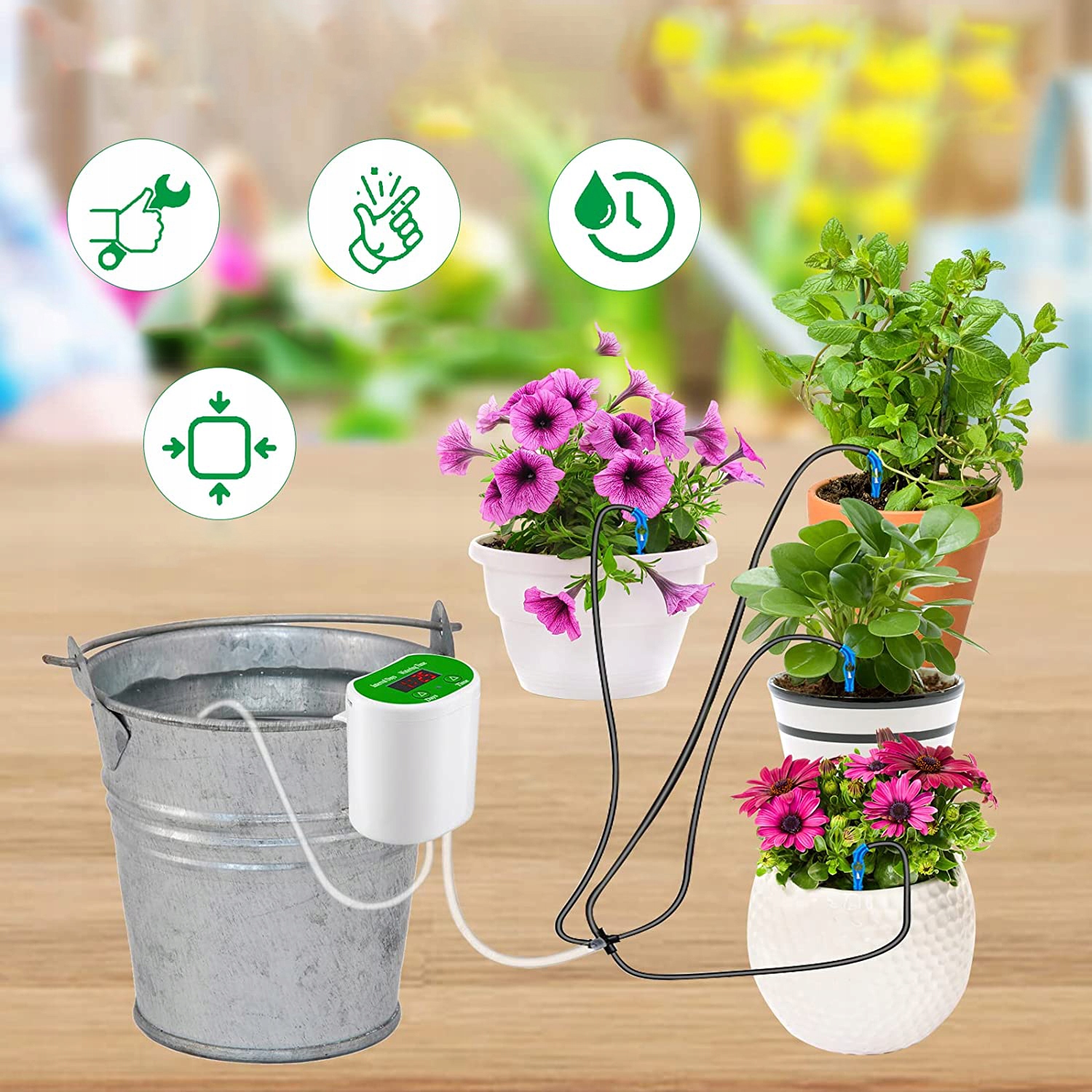 💦 【Широко используется】 поддерживает автоматическое орошение и задержку времени. Подходит для полива суккуленты в горшках, цветах, растениях и овощах и идеально подходит для семей, садов и офисов.