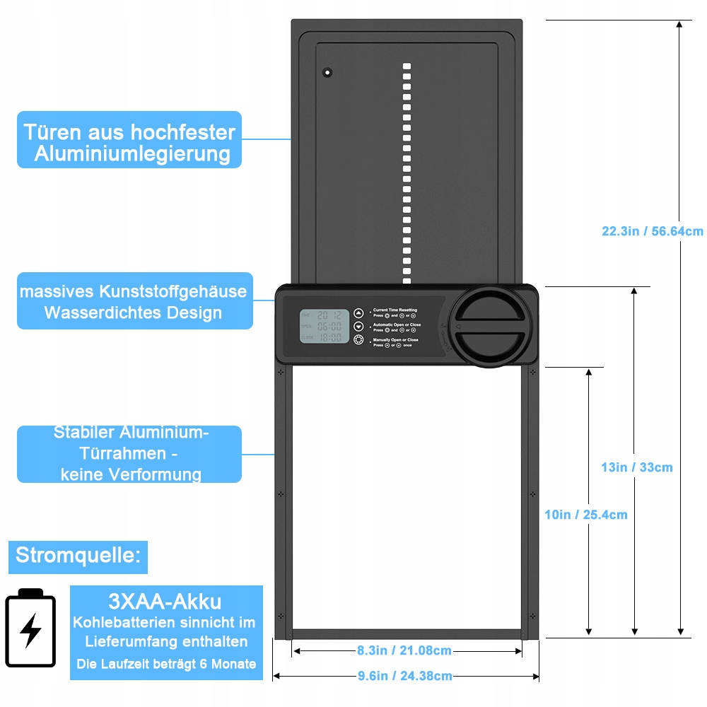 【ПИТАНИЕ НА АККУМУЛЯТОРЕ】 Наслаждайтесь стабильной и надежной работой с нашими откидными дверцами для кур с питанием от батареек. Наш продукт имеет преимущество перед альтернативами, работающими на солнечной энергии, поскольку работает независимо от погоды. Эта автоматическая заслонка для курицы работает до шести месяцев от трех батареек АА (не входят в комплект, 3 щелочные батарейки АА приобретите отдельно). На дверце также имеется индикатор уровня заряда батареи и удобный батарейный отсек с поворотным замком, который позволяет быстро заменить батарею всего за одну минуту.
