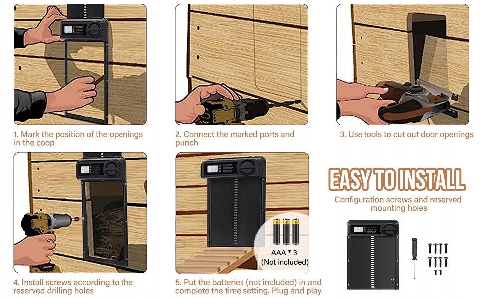 【ЛЕГКАЯ НАСТРОЙКА】 Автоматическая дверца для курицы со встроенным ЖК-экраном позволяет легко устанавливать и регулировать время открытия и закрытия. . Это обеспечивает комфорт и точность работы, а также исключает любую неопределенность.❄️☀️