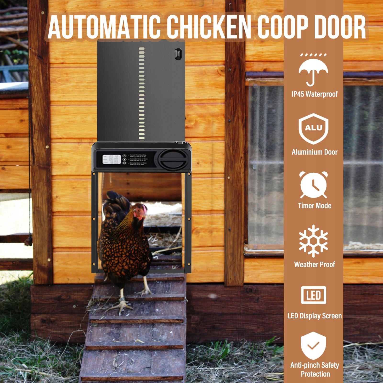 Из прочного алюминия, наши Автоматические двери курятника рассчитаны на экстремальные погодные условия. Благодаря нашим первоклассным дверям для курятников ваши куры будут в безопасности даже в сложных погодных условиях.
