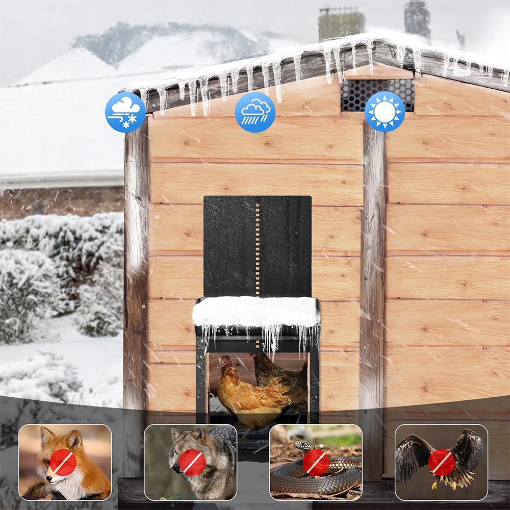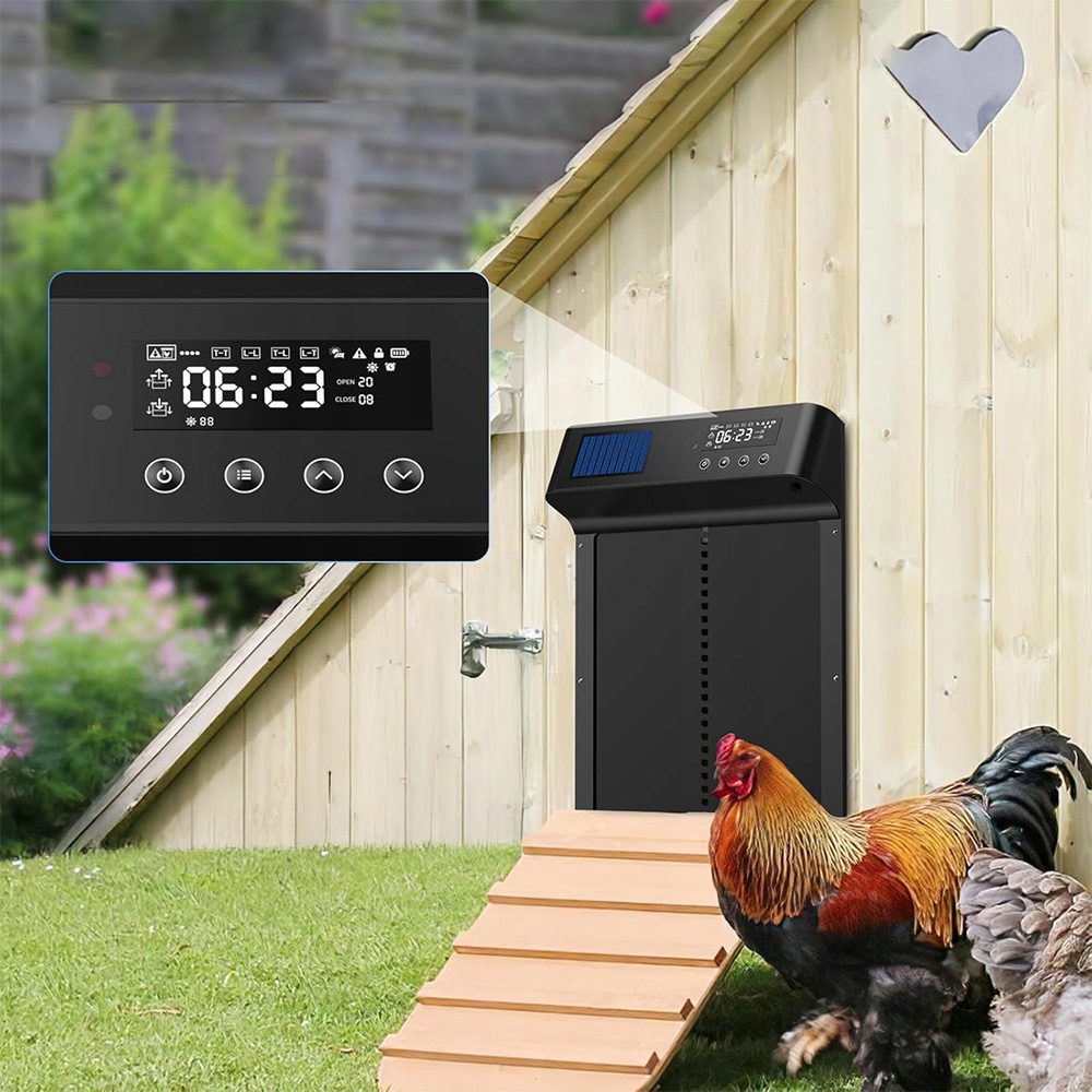 В отличие от других электрических летчиков для цыплят, автоматический клапан для цыплят оснащен чувствительным датчиком, который автоматически прекращает закрытие и поднимается, когда он обнаруживает курицу, проходящую через куриную дверь, предотвращая куриную дверь.