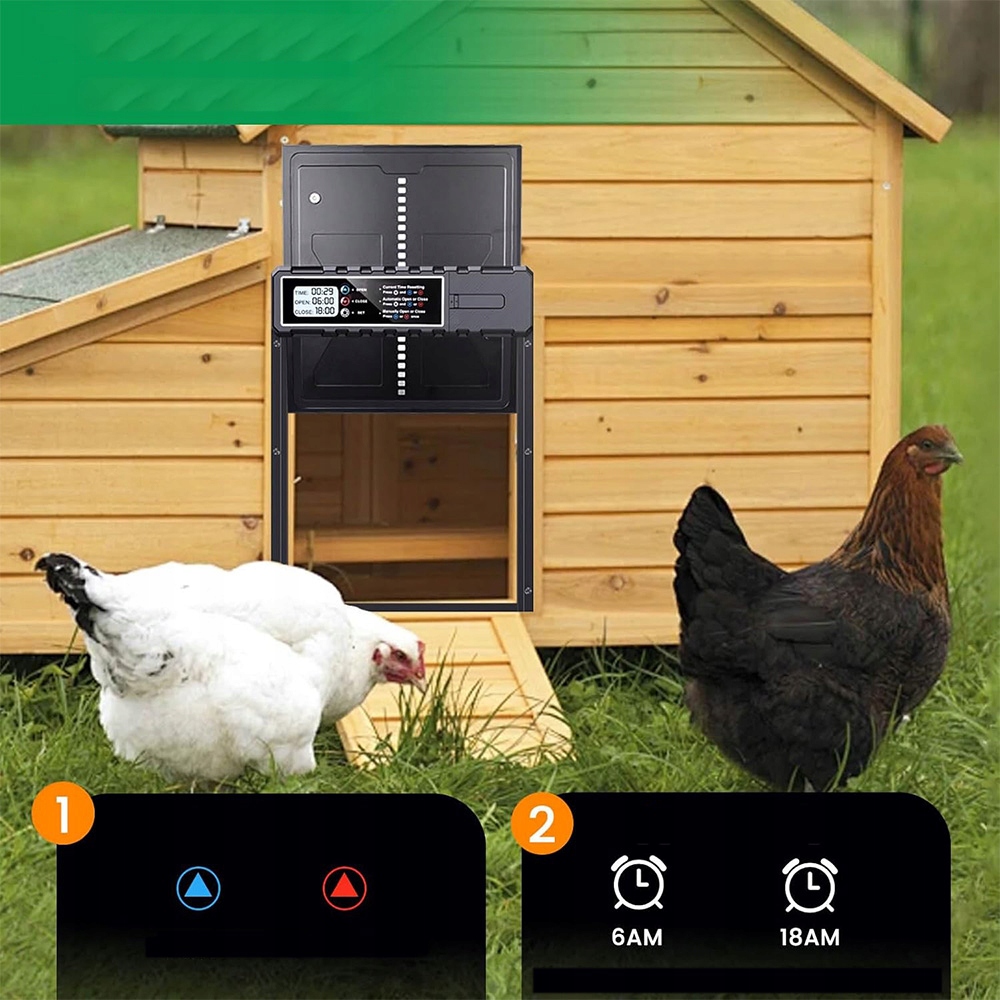 Выберите руку или с таймером. Таймер можно установить точно, автоматическое открытие двери утром и автоматическое закрытие вечером. Независимо от того, путешествуете ли вы или просто наслаждаетесь спокойным утром, вы можете быть уверены, что ваши цыплята будут чувствовать себя хорошо, не ограничивая свое время и свободу.