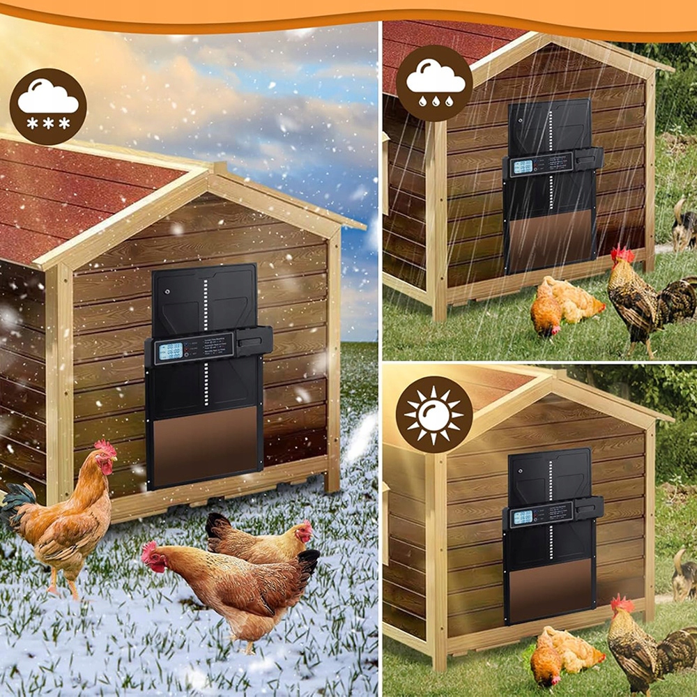 Откройте для себя наш самый высокий качественный автоматический куриный лоскут из прочного алюминия, устойчивые к коррозии и погодные условия, обеспечивая оптимальную защиту курицы. Благодаря продвинутому двигателю он надежно работает при температуре от -15 ° C до 55 ° C, гарантируя наилучшую производительность даже в экстремальных условиях. Примечание. В случае мороза и льда, прежде чем открывать или закрыть дверь, дождитесь таяния льда.