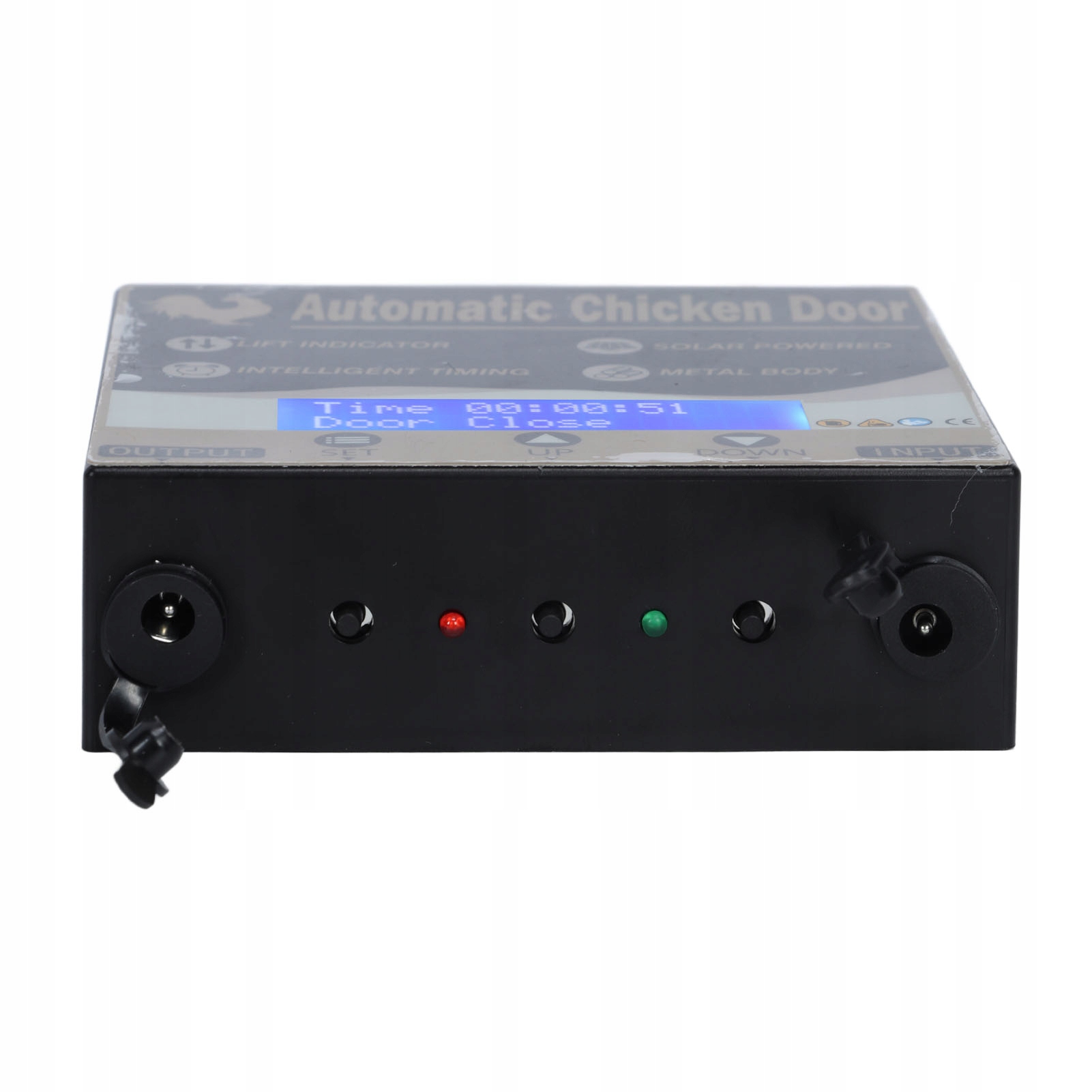 2. Контроллер светодиодного дисплея: Металлические автоматические двери на часы с часами оснащены контроллером дисплея с высоким разрешением. Установка времени ясно и легко благодаря кнопке внизу. На этом дисплее вы можете ясно увидеть конкретное время открытия и закрытие двери курятника.