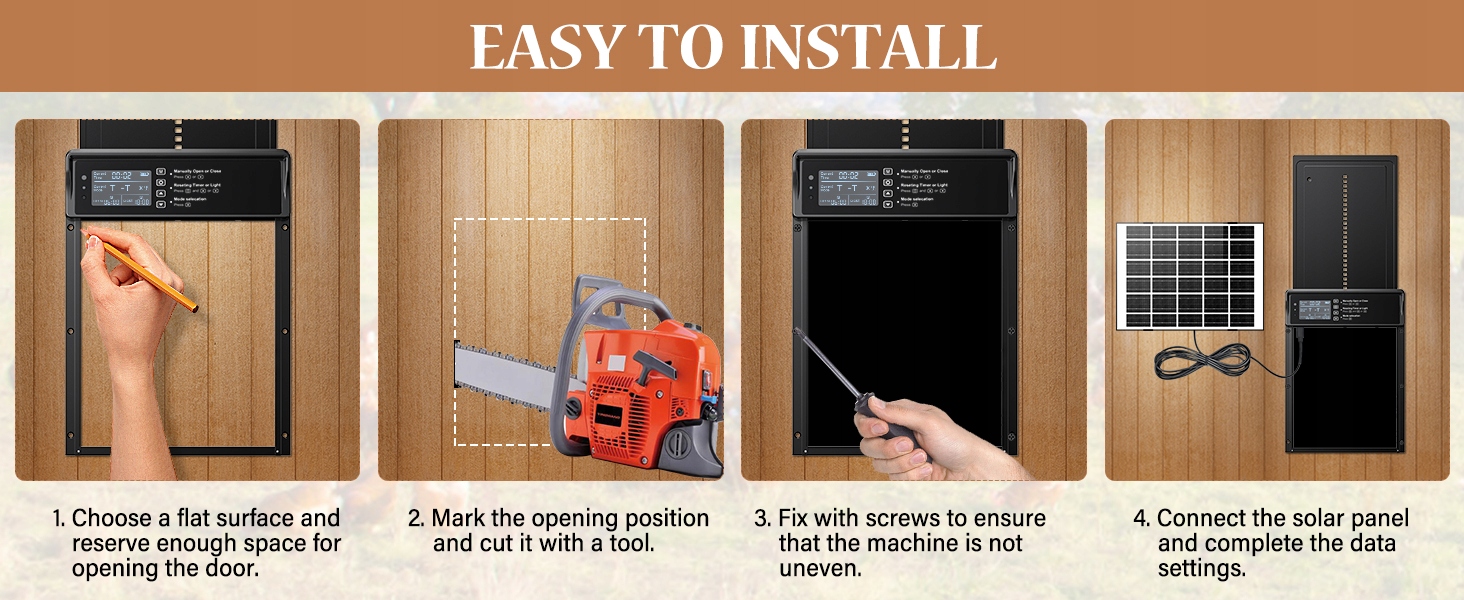 2. Убедитесь, что область, в которой будут установлены двери в курятник, равна, и нет кривых. Если эта область не равна, дверная панель может деформироваться, что может повлиять на функционирование дверей курятника и привести к тому, что они будут кормить или даже остановить