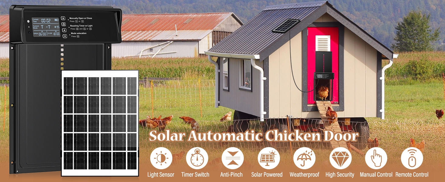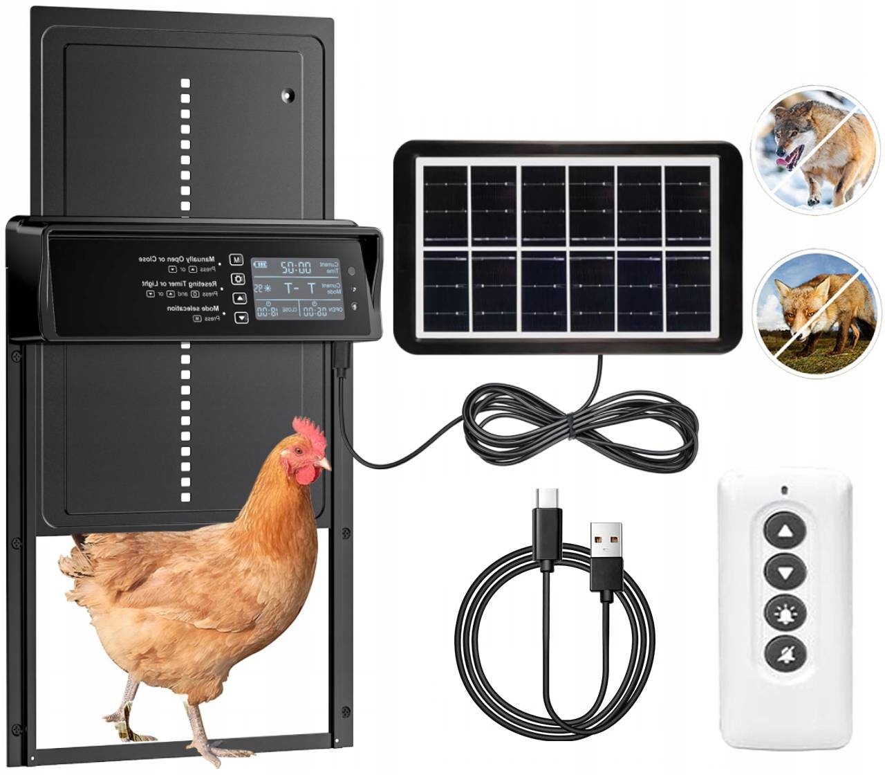 【Автоматический куриный клапан с солнечными ваннами и алюминием】: куриный клапан с солнечной батареей имеет встроенную батарею с емкостью 2000 мАч, которая может быть заряжена не только аккумулятором типа C, которая позволяет использовать его в течение двух месяцев на одном заряде, но и заряжена солнечной энергией, которая обеспечивает защиту окружающей среды и экономии энергии. Оба метода обеспечивают более стабильный срок службы батареи. Примечание. Рекомендуется установить солнечную панель в месте, воздействующем на прямой солнечный свет. Автоматические двери на большую площадь, которая обеспечивает точную настройку дверного открытия и времени закрытия и световой яркости, благодаря тому, какое использование является более удобным. Независимо от того, знакомы ли вы с технологиями или только начинаете его читать, устройство было разработано для того, чтобы удовлетворить пользователей всех возрастов и гарантировать, что даже пожилые пользователи будут справляться со своей работой без проблем. Примечание. Если автоматические ворота для цыплят разряжаются, после полной зарядки батареи необходимо будет сбросить вышеуказанное открытие и закрытие двери. Нажмите кнопку, чтобы открыть/закрыть дверь), режим таймера (вы можете установить свое собственное время открытия или закрытия, используя программируемый таймер), режим открытия/закрытия ручного управления (вы можете открыть или закрыть дверь в любое время). Наши двери оснащены передовыми технологиями защиты от вытаскивания. Если автоматический клапан для курицы сталкивается с препятствием при закрытии, машина автоматически обнаруживает препятствие, и дверь прыгнет примерно на 3 см, а затем снова закроется после остановки на 10 секунд. После удаления препятствия дверь полностью закрывается, не опасаясь, что цыплята пойдут в ловушку. Благодаря этому цыплята останутся нетронутыми. Он водонепроницаемый (IP45), ветрозащитный, резистентный, прочный и прочный. Его можно использовать при температуре от -15 до 60 ℃. Автоматические куриные двери легко установить. Просто следуйте инструкциям, содержащимся в инструкциях по установке. ПРИМЕЧАНИЕ: поручни и двери должны регулярно чистить, особенно после дождя или снега