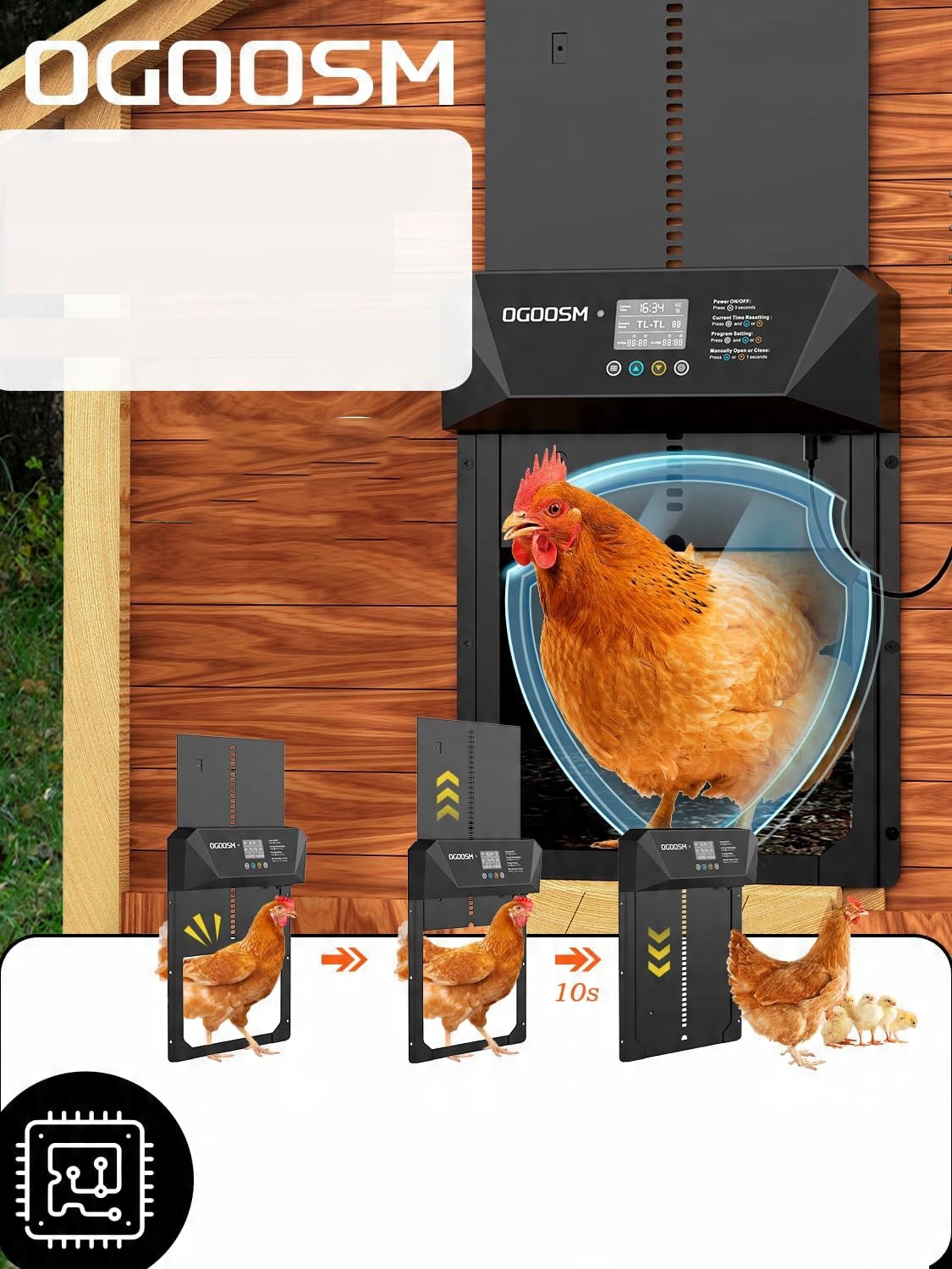 【Защита от мусора для куриных животных. - (2) Через 10 секунд, если цыплята или другие животные уходят или препятствие удаляется, ада закрывается обычно. Если препятствие все еще присутствует, автоматические двери для солнечных кур будут повторять предыдущие шаги три раза, а затем оставаться в заблокированном положении.