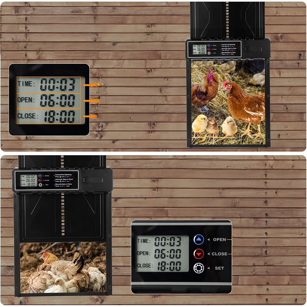 ▶️Встроенный усовершенствованный датчик:Встроенный усовершенствованный датчик обнаруживает малейшее вмешательство и немедленно останавливает процесс закрытия, обеспечивая оптимальную защиту вашей птицы.