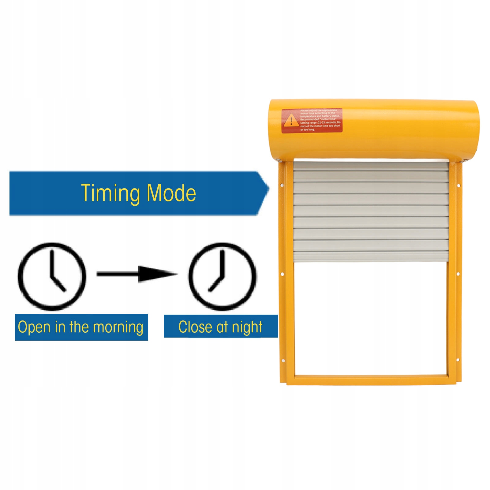 4. Режим таймера: установите индивидуальное время открытия и закрытия дверцы для кур в зависимости от сезона, направления и регулярности поведения цыплят. Этот режим обеспечивает комфорт и эффективность. Простое программирование кнопок.