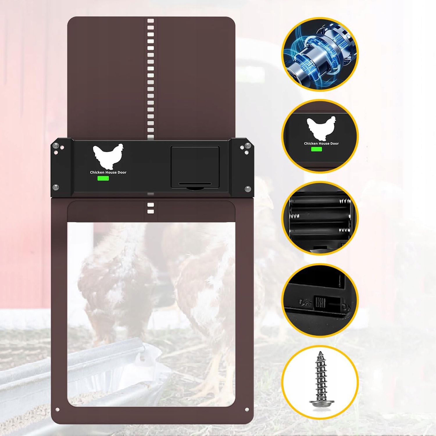 Механизм открытия дверей в курице был разработан для длительного использования. Защита птицы от хищников