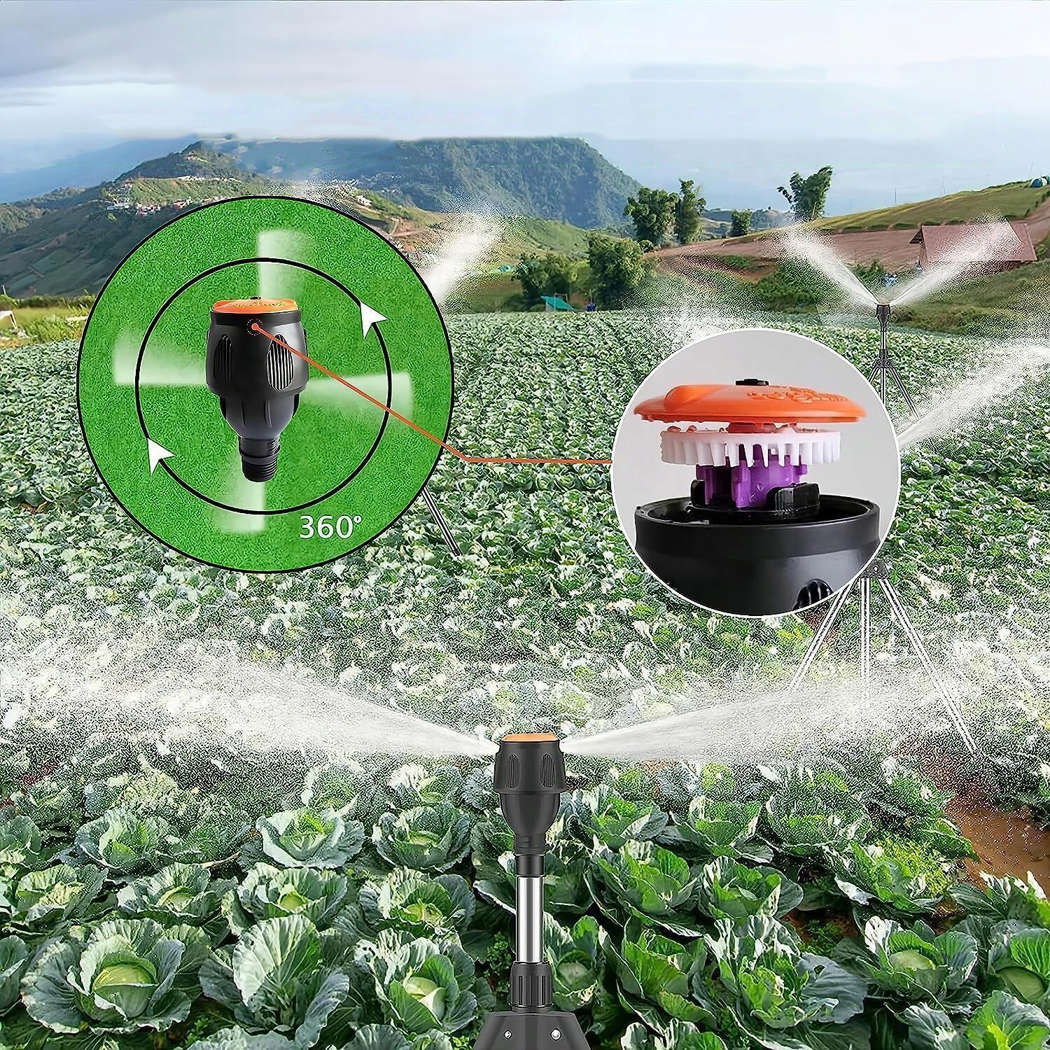 💧【 Роторный штатив спринклер 360 ° °】 Наш суп на штативе был разработан для бесплатного оборота на 360 градусов и автоматическое орошение больших площадей, обеспечивало круглую зону обложки и экономит много времени. Идеально подходит для полива газон, садов, цветов или овощей.