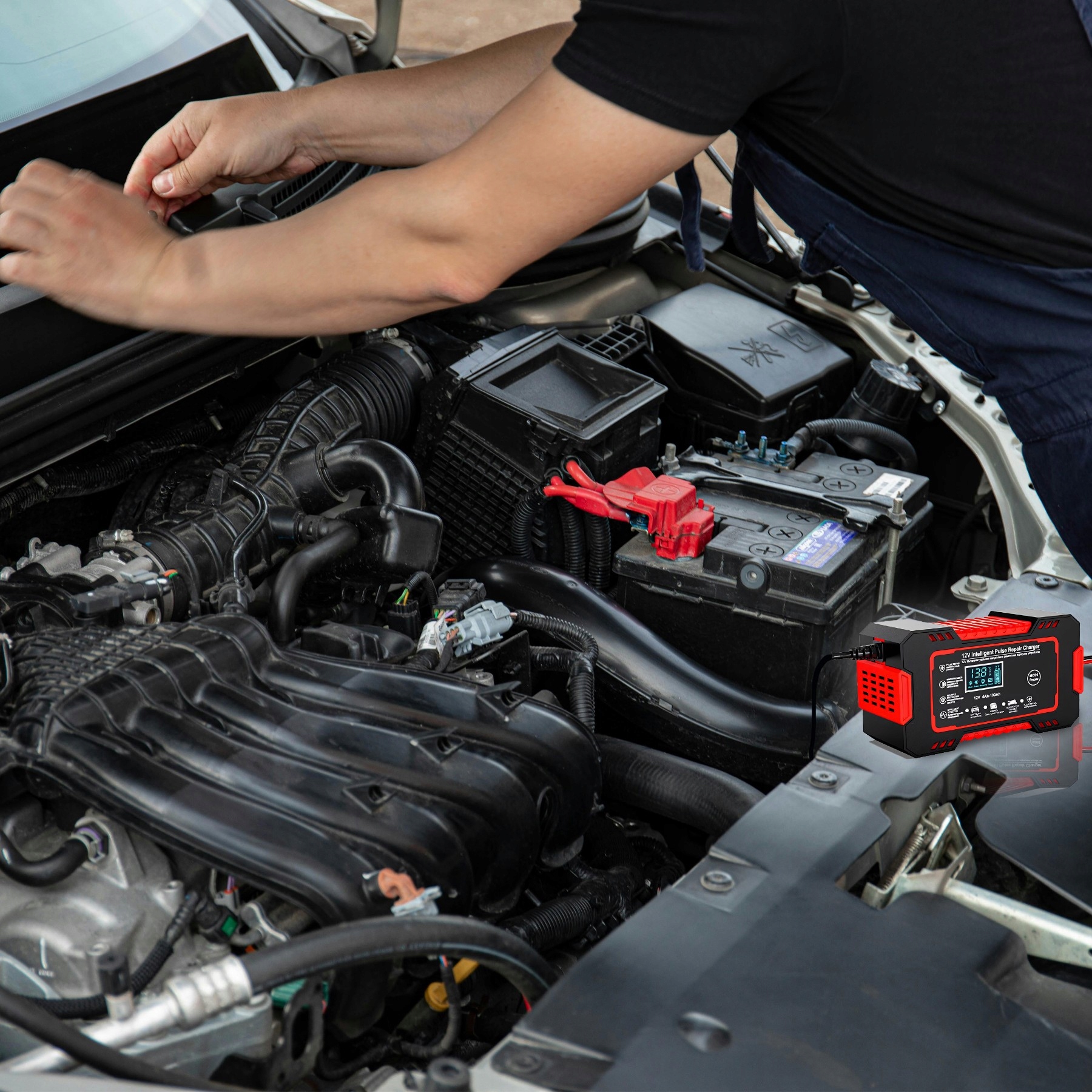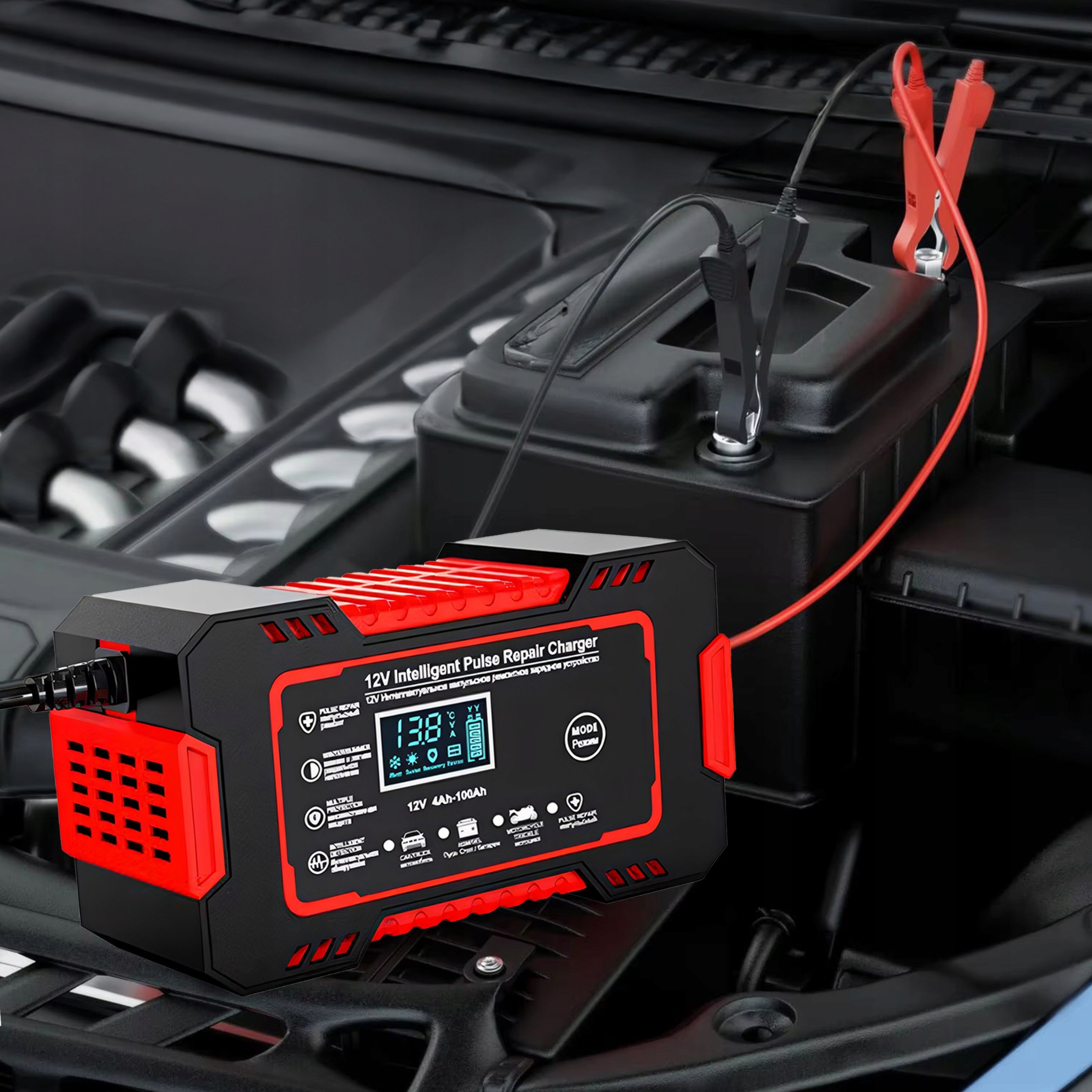 ⭐ АВТОМАТИЧЕСКИЙ ВЫПРЯМИТЕЛЬ 12 В С ФУНКЦИЕЙ РЕМОНТА: Зарядный генератор, идеально подходящий для домашнего использования, обеспечивающий эффективную зарядку и регенерацию аккумуляторов автомобилей, мотоциклов и других транспортных средств.