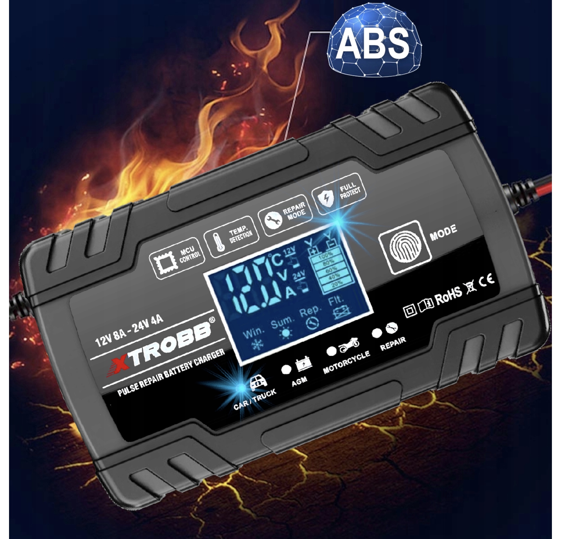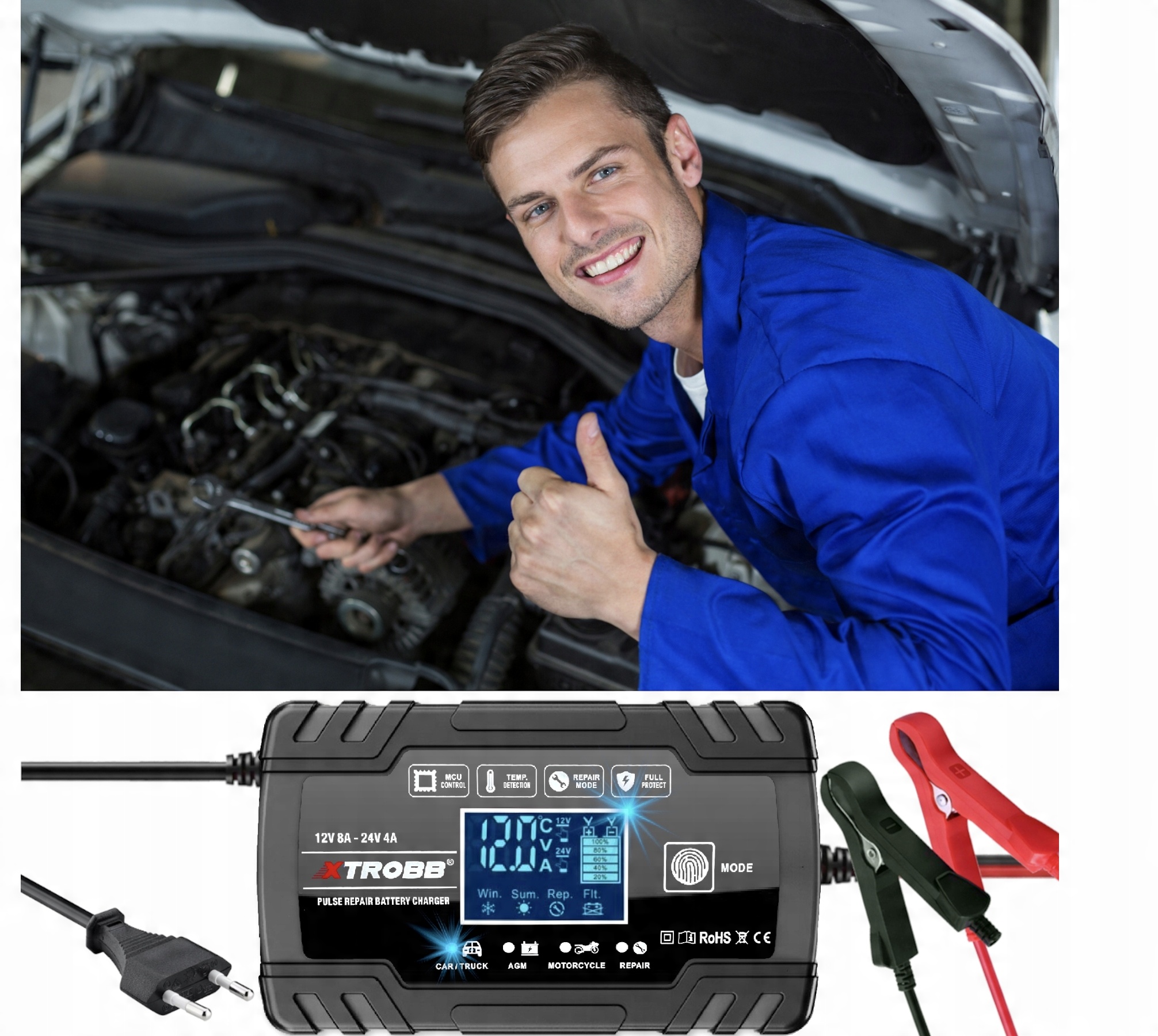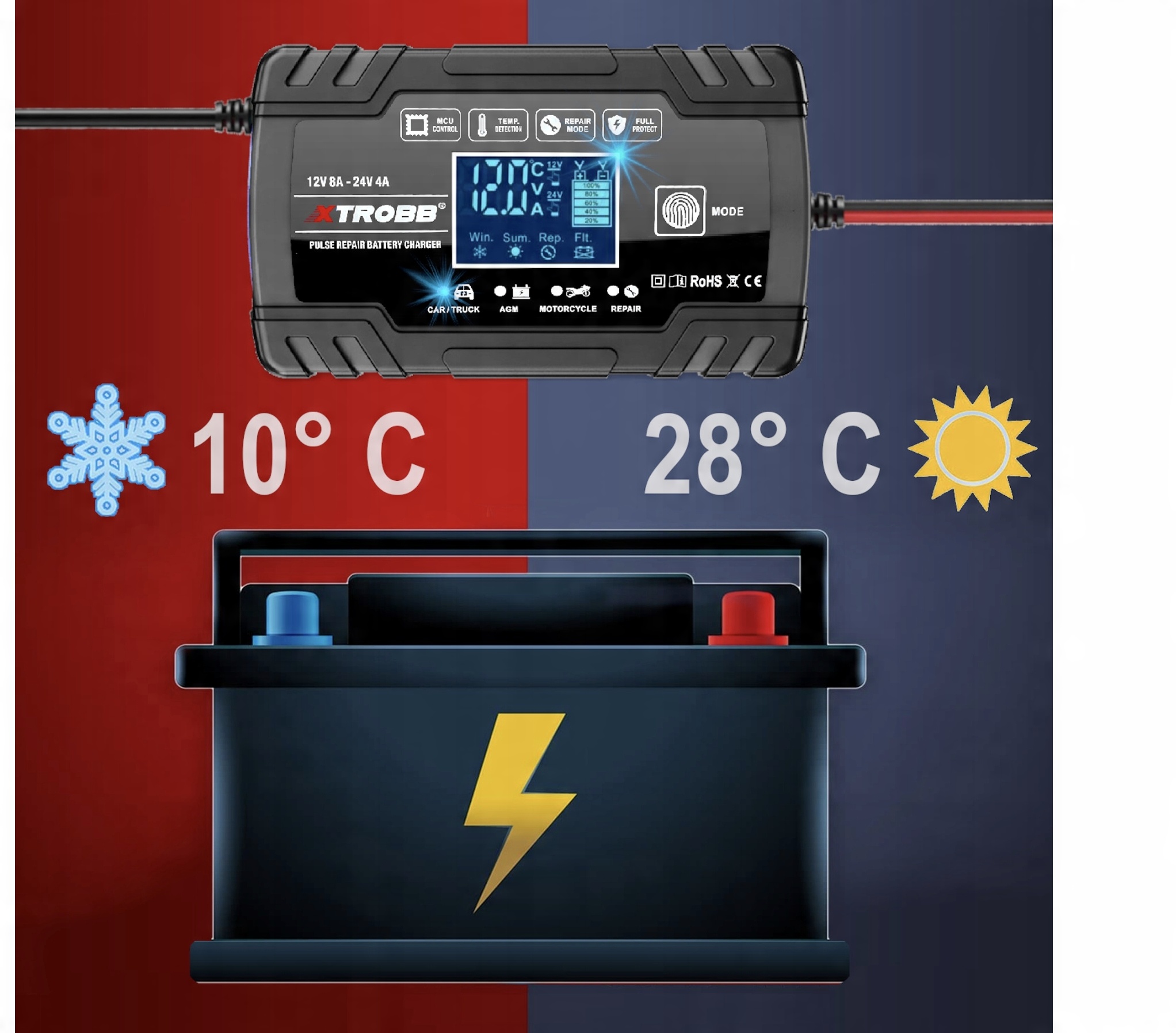 Зарядное устройство поддерживает аккумуляторы с системой START/STOP. Хотя это решение значительно снижает выбросы выхлопных газов, к сожалению, оно сильно расходует аккумулятор. С помощью этого зарядного устройства вы сможете быстро и легко подзарядить такой аккумулятор.
