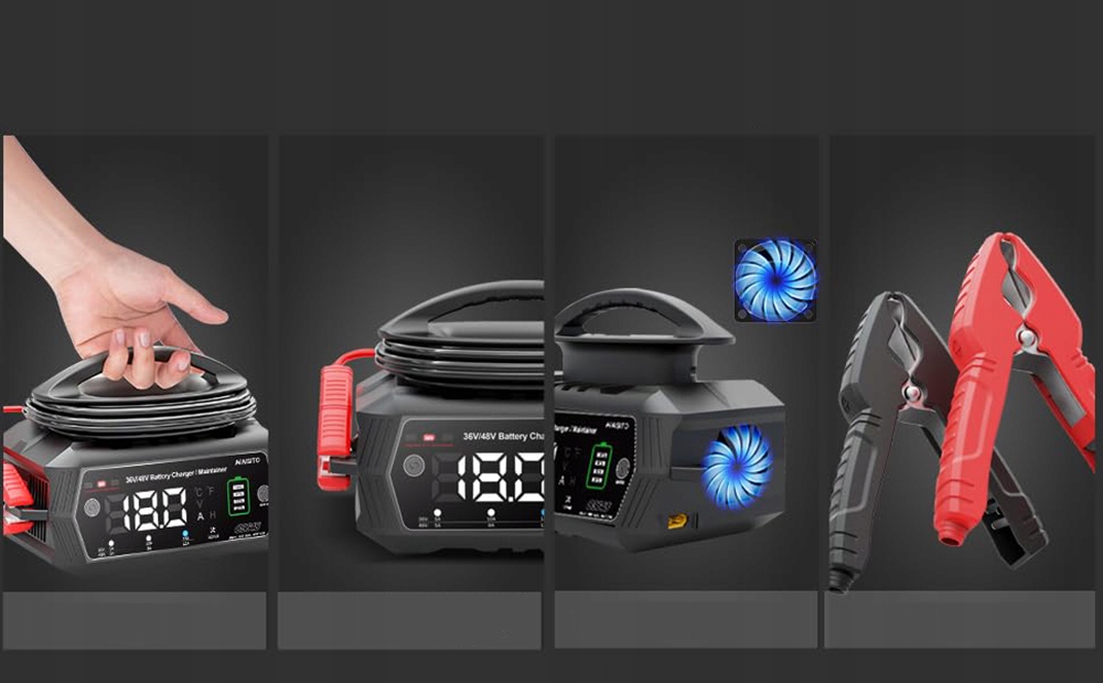 【Безопасная зарядка】 Интеллектуальное зарядное устройство, большой ЖК-дисплей для зарядки и состояния аккумулятора; напряжение и ток зарядки, внутренняя температура, процент заряда, летний режим, зимний режим и т. д. Рабочий процесс прост: просто подключите питание и выберите напряжение аккумулятора и зарядный ток для интеллектуальной зарядки аккумулятора. Зарядное устройство для аккумуляторов, обслуживание аккумуляторов, сервисное зарядное устройство, комплексное решение для десульфатации аккумуляторов.