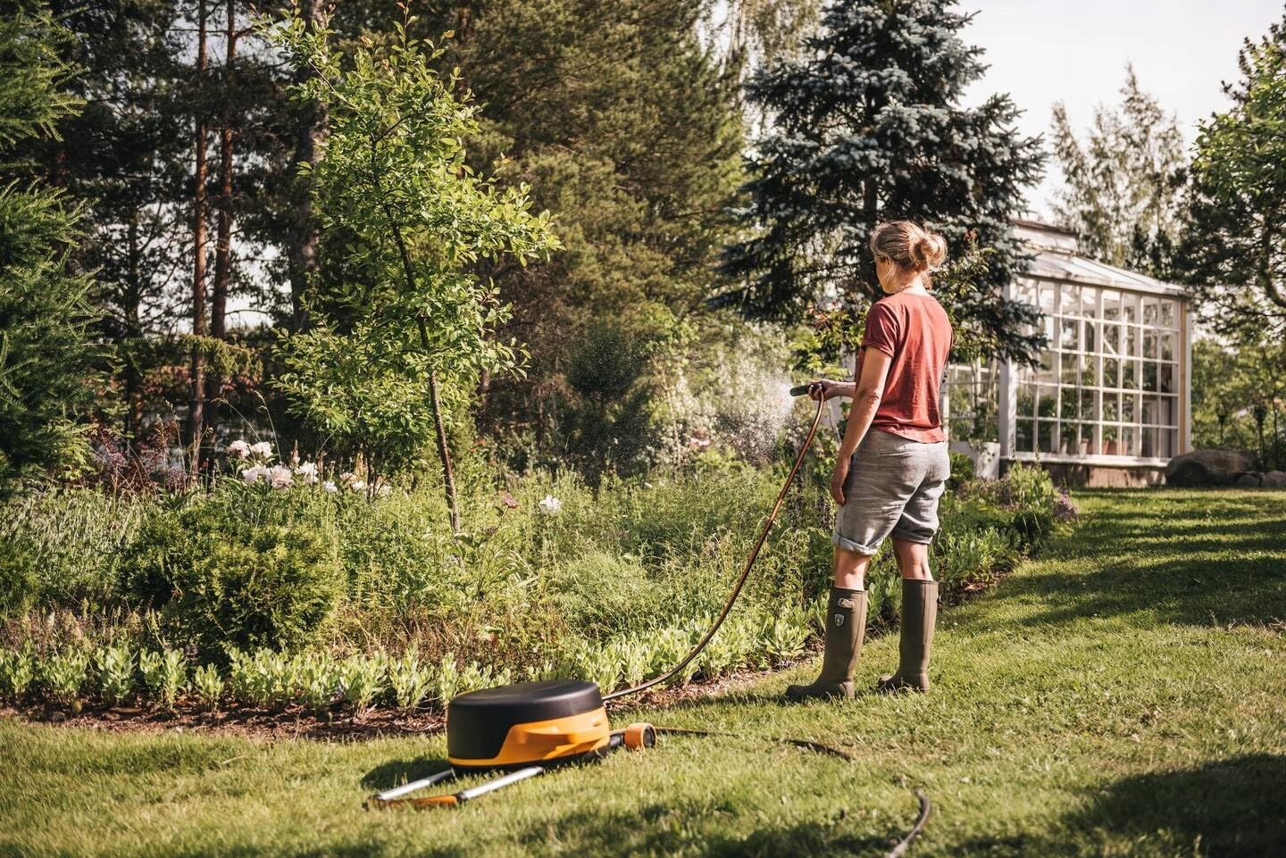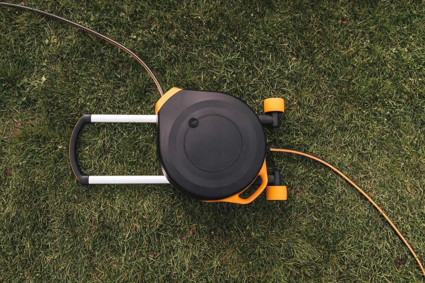 - Автоматические барабанные фискары XL позволяют легко хранить длинные садовые шланги