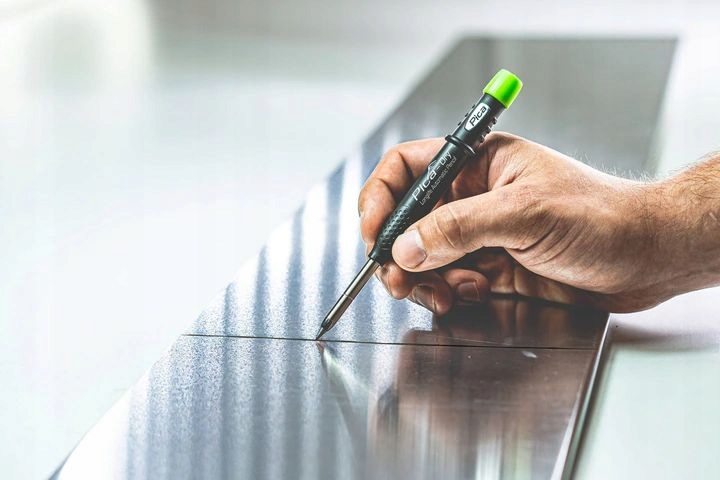- конец маркера удлинён, поэтому он легко входит в отверстия, что позволяет делать маркировку, например, для винтов в консоли.