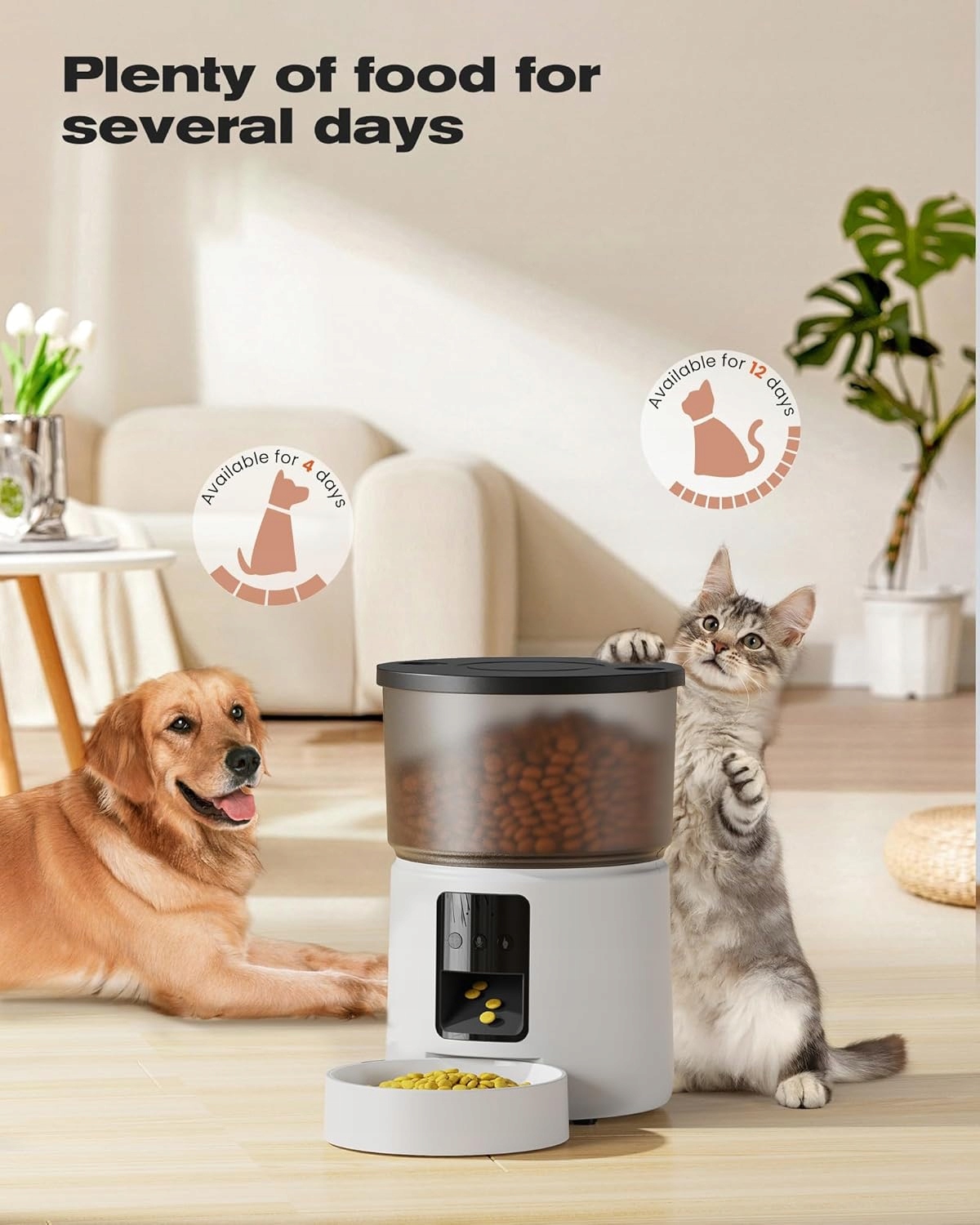 ☑️ Емкость кормления: кормушка для кошек емкостью 5 литров может кормить вашу кошку и собаку до 25 дней. Интеллектуальное управление по Wi-Fi удобно, достаточно установить время кормления и количество еды, и вы можете без каких-либо забот отправляться в отпуск или на работу, будучи уверенным, что ваш питомец сможет есть, даже когда вас нет дома.