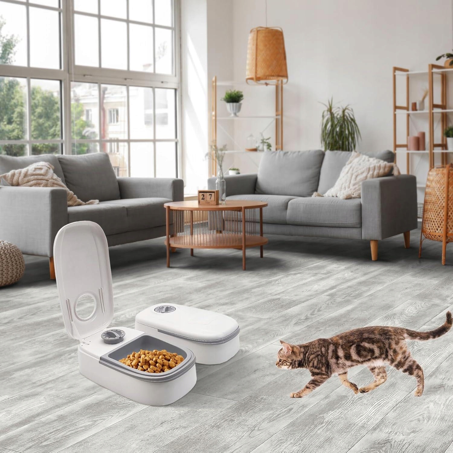 Наша автоматическая кормушка для кошек предназначена для кормления как сухим, так и влажным кормом. 🥫 Гарантирует, что влажный корм вашей кошки останется свежим и аппетитным до момента еды благодаря герметичным отделениям и точному контролю порций. 🍽️