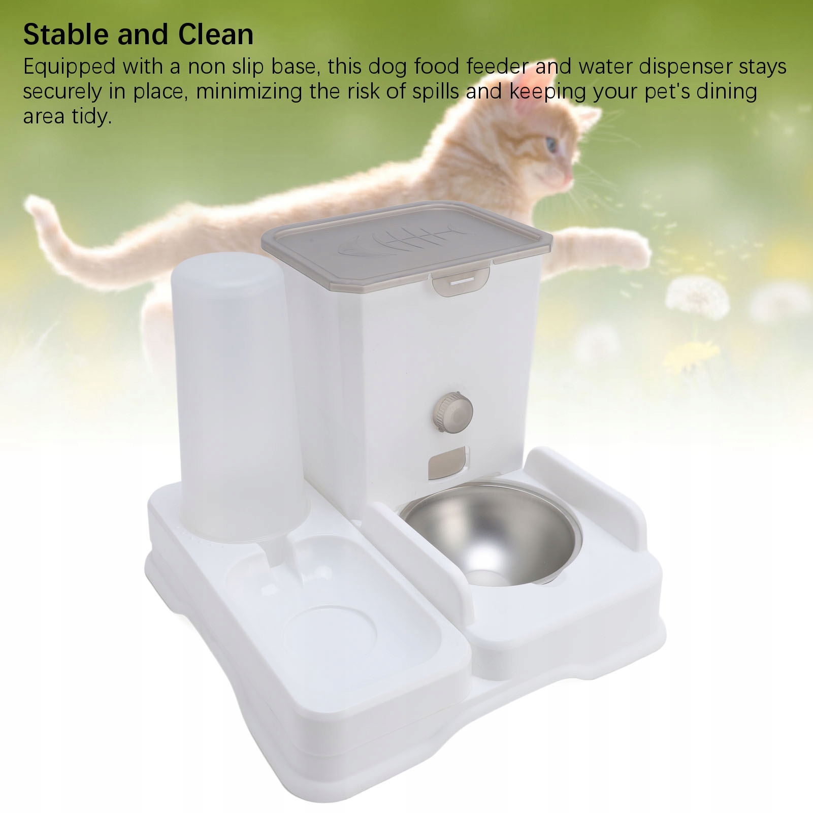4. Стабильный и чистый: оборудованный базой без скольжения, этот кормушка для собак и дозатор воды остается на месте, сводя к минимуму риск разливки и поддержания заказа столовой для животных.