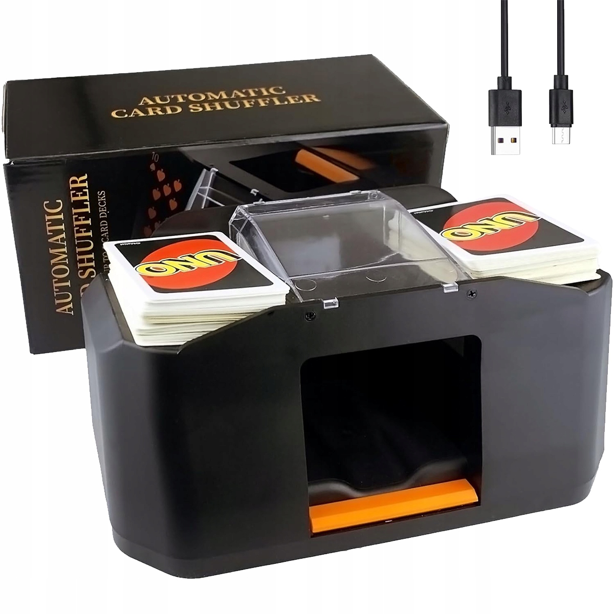 Предназначено для удобного использования в различных карточных играх, таких как покер, UNO, Skip-Bo и популярных европейских играх, таких как скат, Таро и Белот. Этот тасователь экономит ваше время и усилия, позволяя вам наслаждаться игрой без необходимости перемешивать карты вручную.