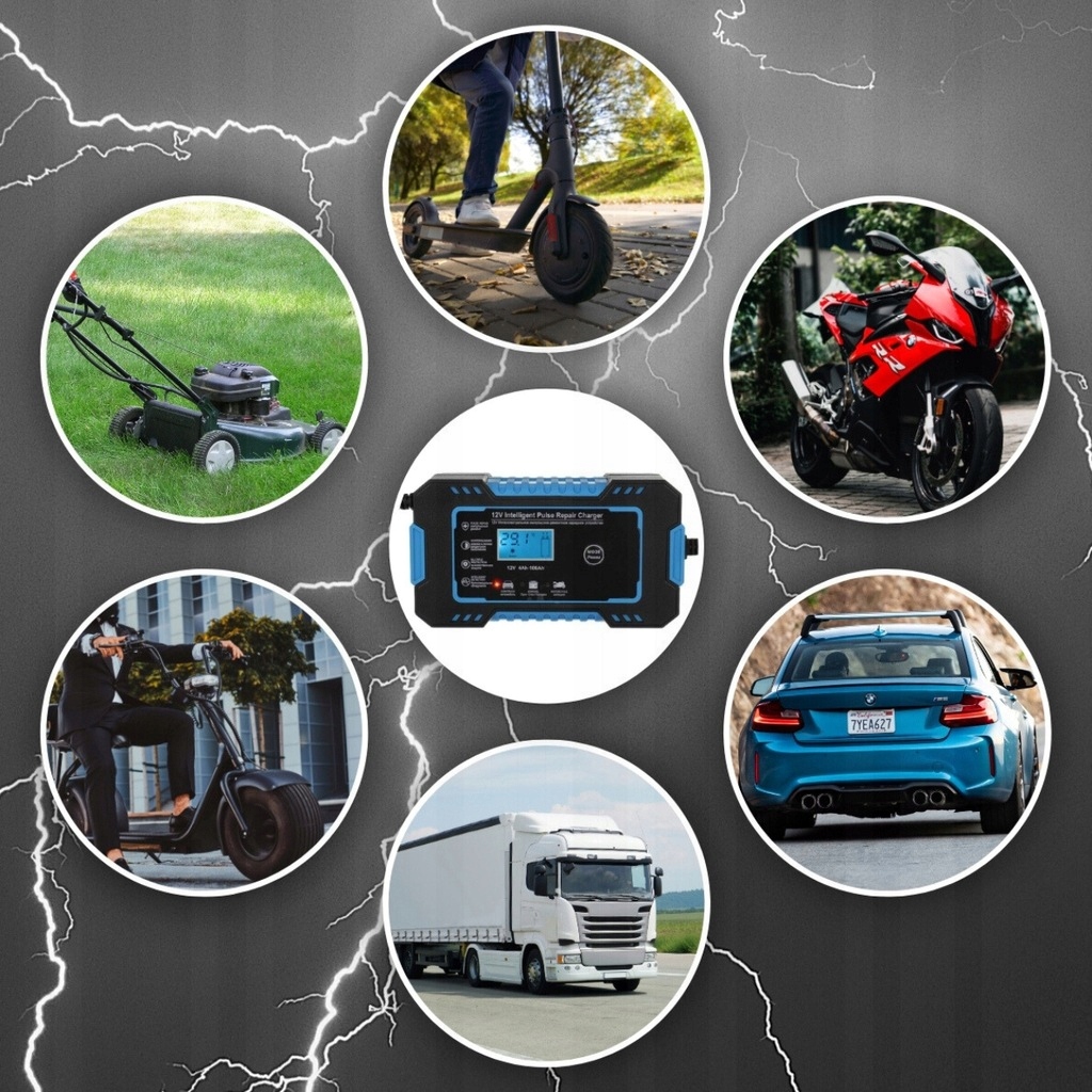 Зарядка мотоцикла : наше зарядное устройство также идеально подходит для зарядки батареи в мотоцикле, обеспечивая надежность и производительность.