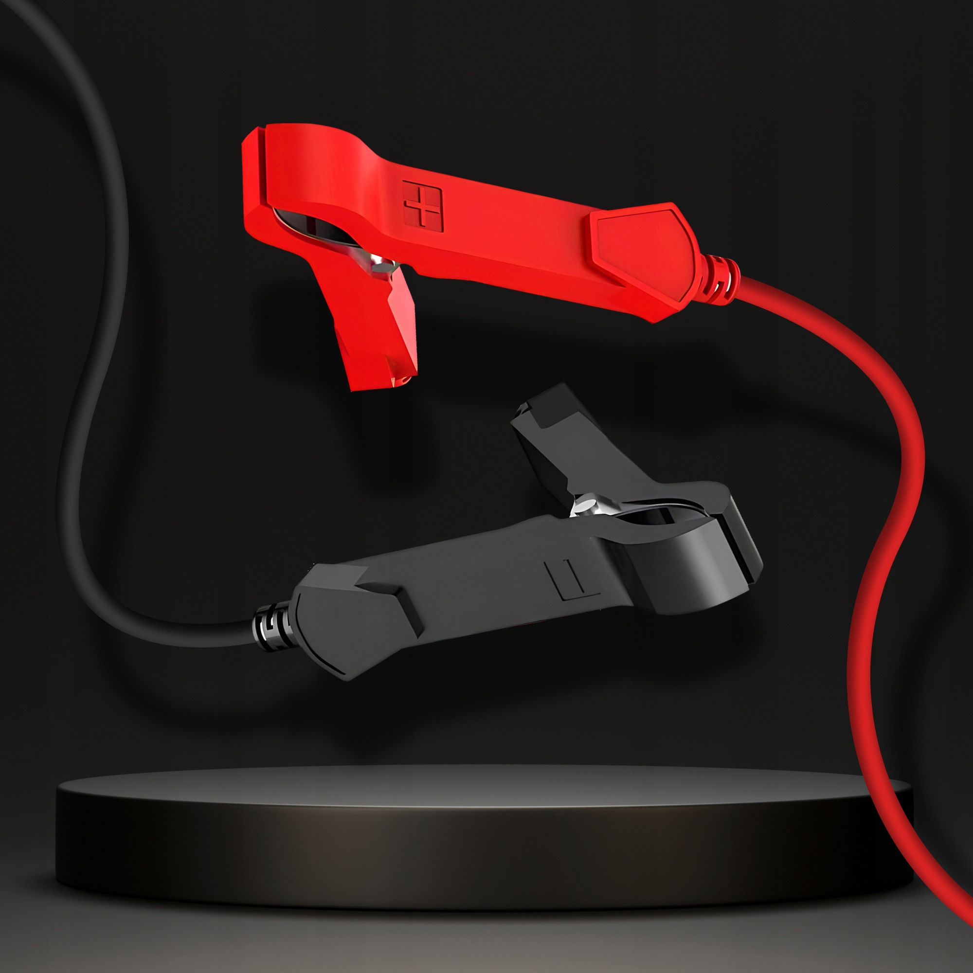 1. Подключите КРАСНЫЙ зарядный зажим к клемме + POSITIVE на аккумуляторе.