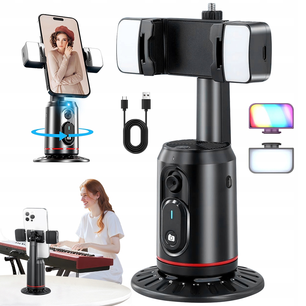 - Нет приложений, нет проблем Благодаря усовершенствованной компьютерной системе штатив автоматически распознает и отслеживает ваше лицо или тело и стабильно вращается на 360°, даже когда вы двигаете руками. Идеально подходит для видеозвонков с семьей или прямых трансляций — вы всегда в центре кадра! Никакой установки приложений и сложных настроек: отрегулируйте угол, нажмите «Старт» и запись началась.