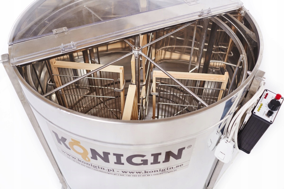 Можно сказать для всех. Это устройство очень профессиональное, по некоторым причинам наиболее совершенным из обычно используемых вариантов. Извлечение меда из кадров происходит здесь на трех этапах. После загрузки нагрузки и запуска устройства кадры сносят в одном направлении. Механизм корзины означает, что кассеты под влиянием центробежных сил сами позиционируют себя параллельно стене медового месяца. Это местоположение способствует ускорению очищающих клеток. Тем не менее, меда накапливался на другой боковой прессы на среза, поэтому, чтобы предотвратить разбитый воск, лишь часть его содержания немытая с первой страницы. Затем автоматически корзина меняет направление движения. Это означает, что кассеты поворачиваются при 180 °, а на втором этапе меда с другой стороны одинаковых кадров, на этот раз в полном объеме. Третий этап - это возвращение к первоначальному направлению движения мусора, чтобы полностью опустошить меда из ломтиков