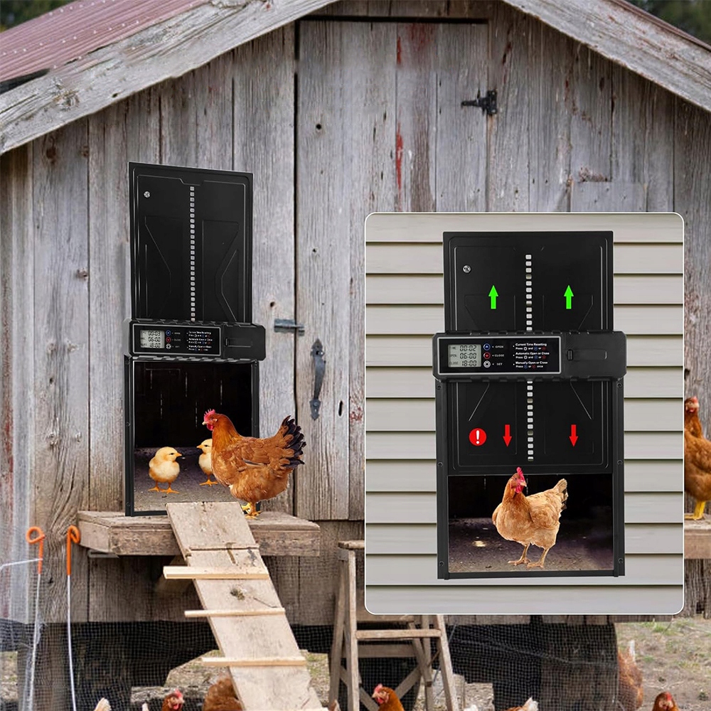 - Узнайте новое измерение простоты благодаря нашим автоматическим дверям для курятников. Чрезвычайно интуитивно понятный ЖК -дисплей может быть легко установлен. Немедленно забыть о сложных конфигурациях и часах открытия и закрытия программ.