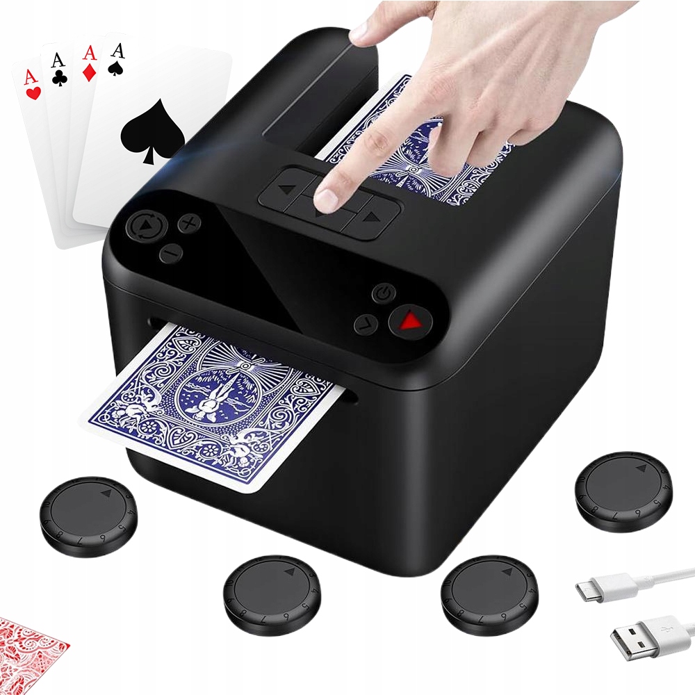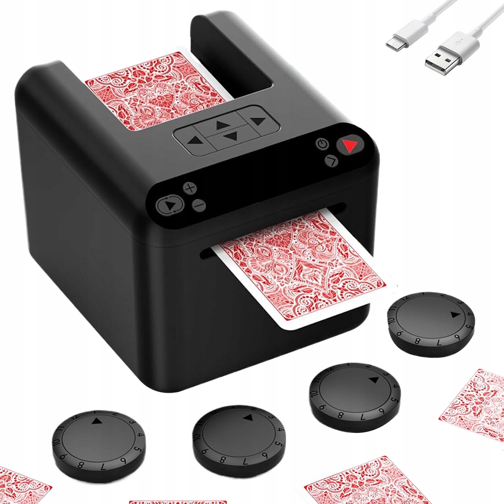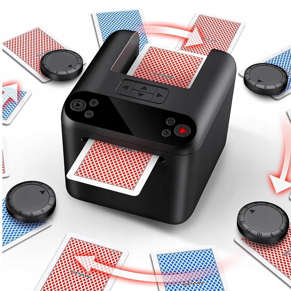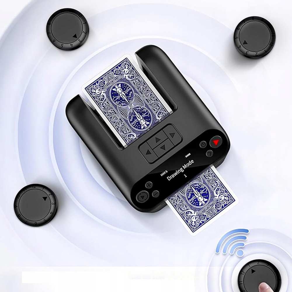 🥊⛳Устройство для раздачи карт、режимы работы - пользовательский режим, режим Техасский Холдем、конфигурации раздачи - 9 опций (количество игроков до 12, количество рук, общие карты, случайность, карты на руку, метод раздачи и т.д.)、элементы управления - 4 независимые кнопки вызова (возможность сопряжения до 12), аккумулятор 4000мАч、совместимость - карты международного стандарта (покер 63,5мм88,9мм, перемычка 57мм88,9мм, UNO 87мм*56мм)、материал - пластик + электроника, черный