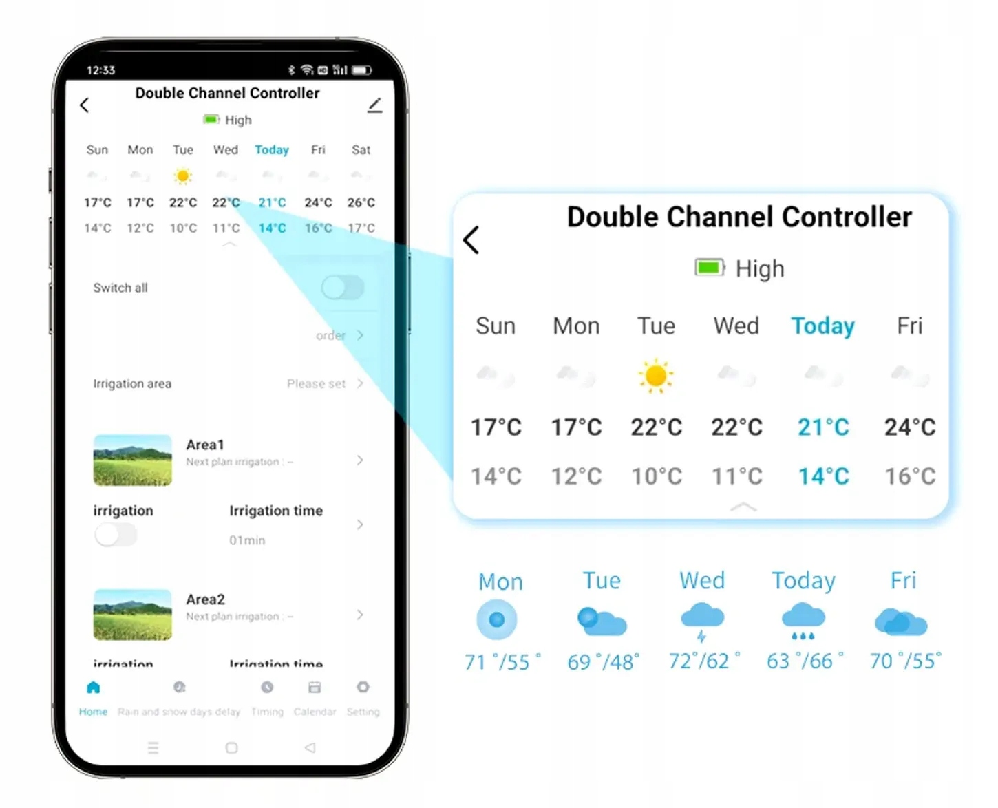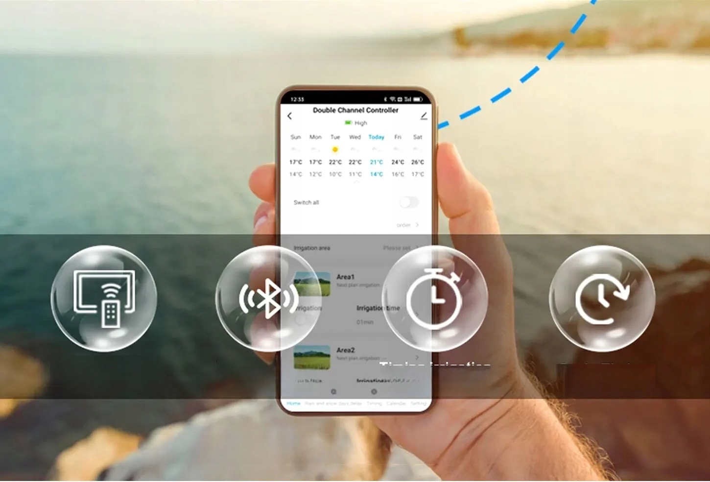 ➡ низкое энергопотребление: этот интеллектуальный контроллер обычно работает в течение всего сезона всего в 2 батареях АА. Для установления связи между устройством и телефоном через приложение и реализацию интеллектуального управления телефоном