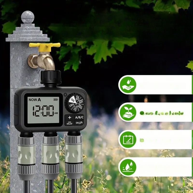 ➡ Большой ЖК -дисплей: ирригационные часы используют большой ЖК -экран для отображения времени, частоты использования, времени интервала и т. Д., Все ясно с первого взгляда. Погода, которая делает его подходящим для снаружи все лето.