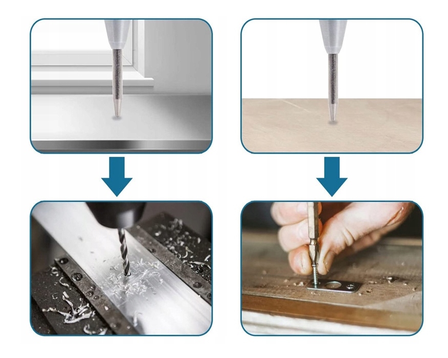 Pointaks предназначены для быстрого, точного выбора точек на поверхности заготовки, например, дерево, металл или пластик. Чаще всего используется, чтобы отметить точку перед бурением. Таким образом, названная оценка облегчает начало бурения, ограничивая неблагоприятное воздействие сверла, скользящего на поверхности материала. Выбор возникает в результате резкого конца точки в материале. Представленные автоматические точки, отметьте материал благодаря использованию сильной внутренней пружинной стали, закаленного шпиля. Точка не требует растяжения пружины -это автоматически. Сразу после нажатия иглы к материалу и удара мы можем повторить деятельность, отметив другую точку.