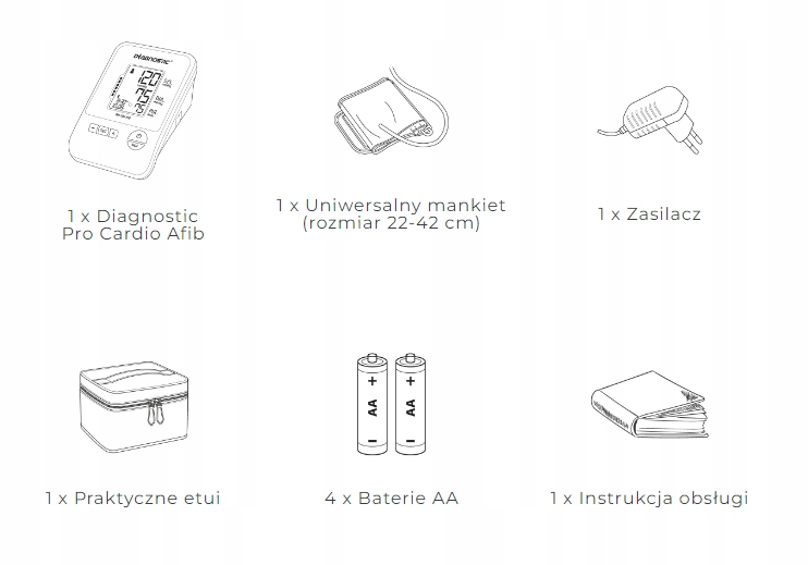 Тонометр Diagnostic PRO Cardio Afib — это полностью автоматический цифровой прибор для измерения артериального давления на руке, позволяющий измерять систолическое и диастолическое давление, а также частоту сердечных сокращений осциллометрическим методом. Выполняется самостоятельно дома. Для получения дополнительной информации об артериальном давлении и его измерении обратитесь к врачу. Не используйте прибор для измерения артериального давления у младенцев и детей до 12 лет, а также у беременных с преэклампсией.