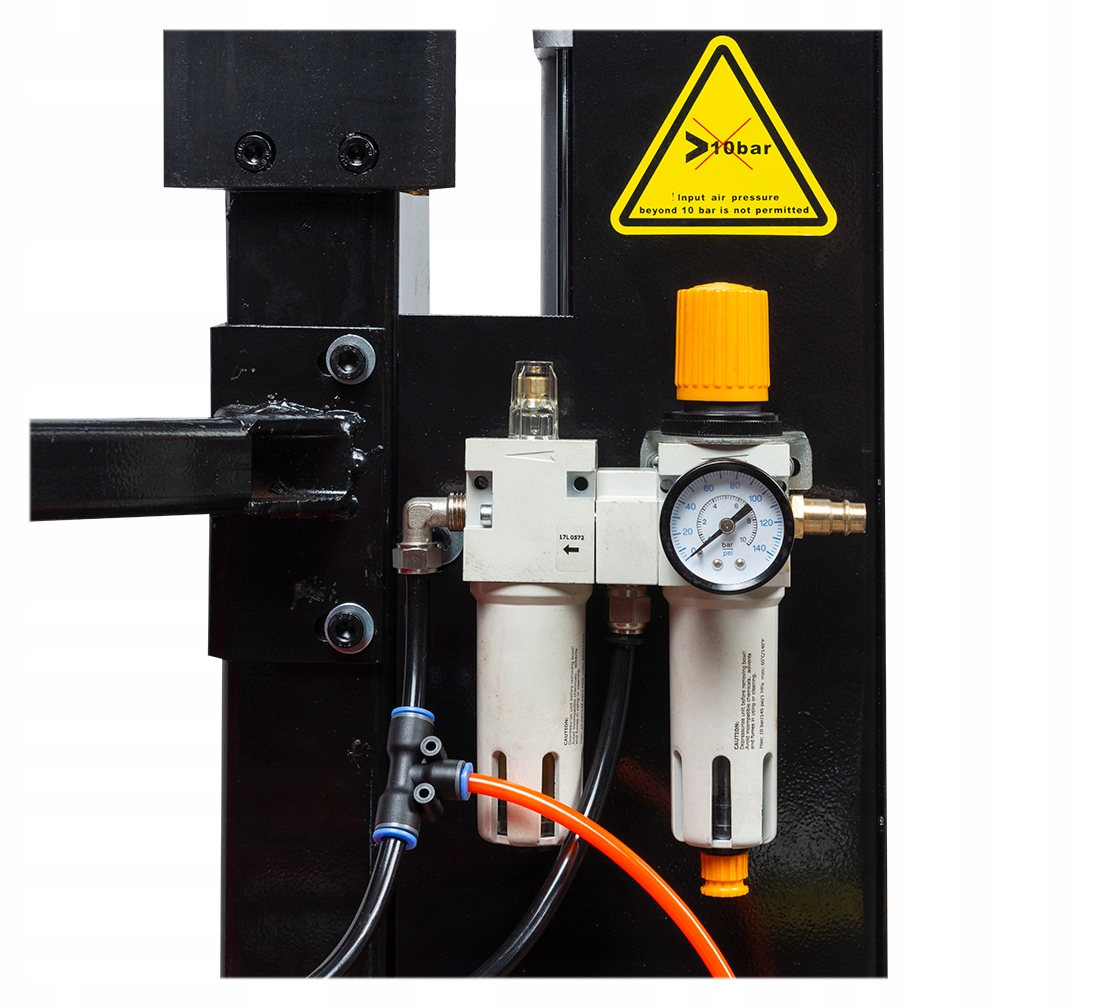 - Стандартное оснащение: Блок фильтрации и смазки: Масленка + водоотделитель; Накачивающий пистолет с манометром; Пластиковые чехлы на ножку (ролик и слайд); Пластиковые чехлы на челюсти 4 шт.; Монтажное ведро; Контейнер для аксессуаров; Рукоятка 3D2 (2 ролика, башмак, центрирующий конус)